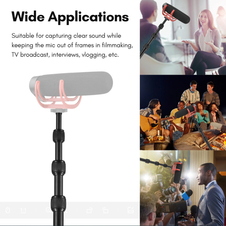 공장 도매 1.5 m 알루미늄 합금 텔레스코픽 마이크 리프팅 로드 마이크 녹음 인터뷰 셀카 스틱 확장로드