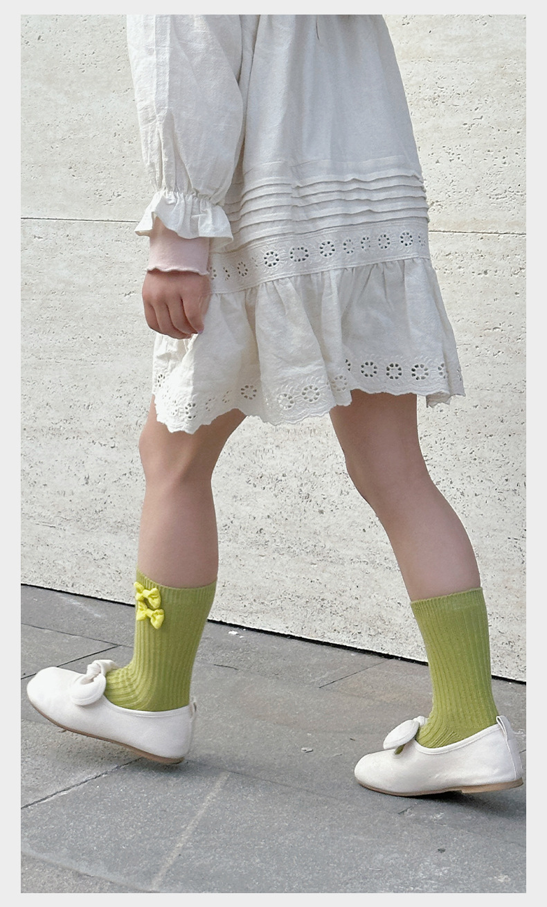 어린이 양말 봄과 가을 아기 소녀 중반 송아지 양말 소녀의 뼈없는 느슨한 양말 어린이 더블 나비 넥타이 단색면 양말스토어 가기