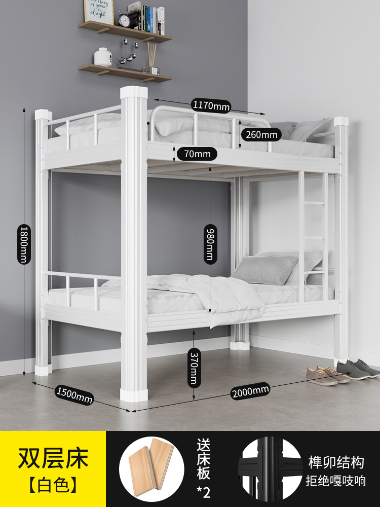 이층 침대 상하 이층 철제 프레임 침대 학교 직원 기숙사 높고 낮은 침대 아파트 프로필 침대 두꺼운 철제 침대 제조 업체스토어 가기
