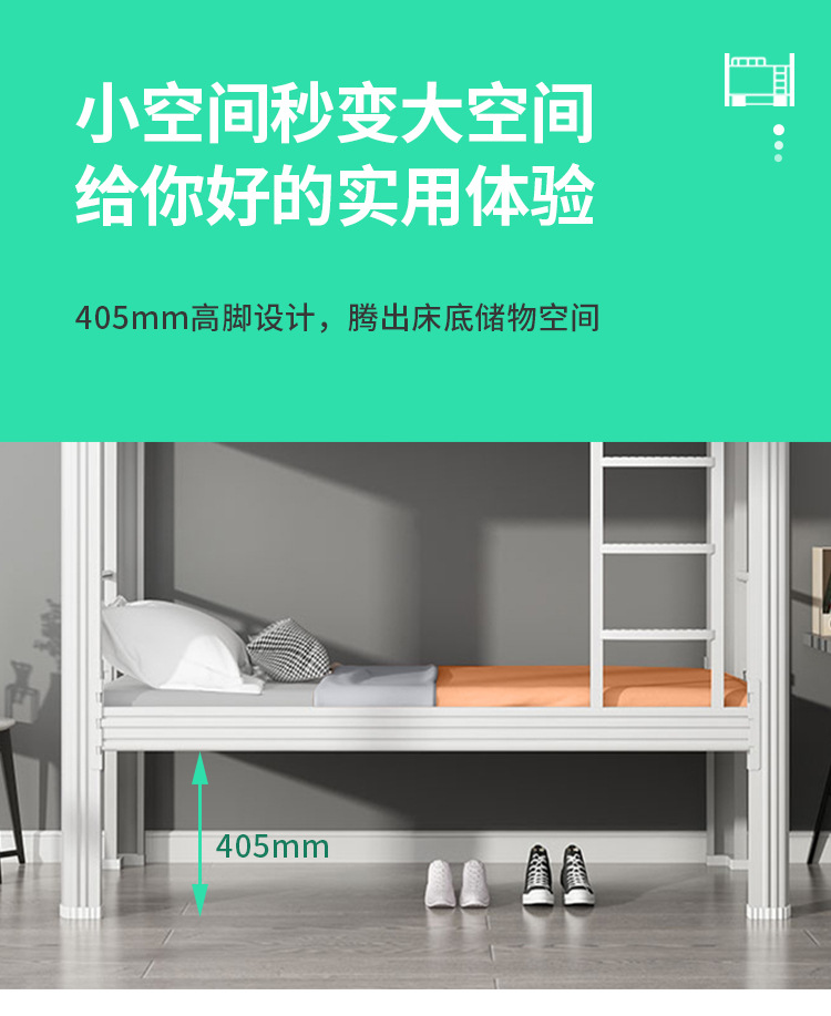 双层床上下铺铁架床学校员工宿舍高低床公寓型材床加厚铁艺床厂家