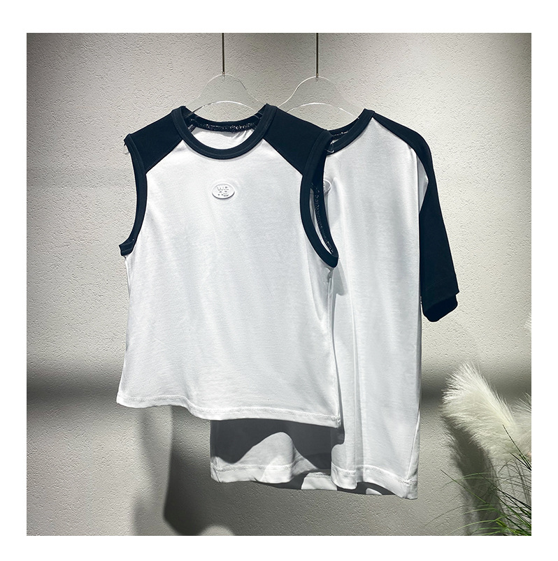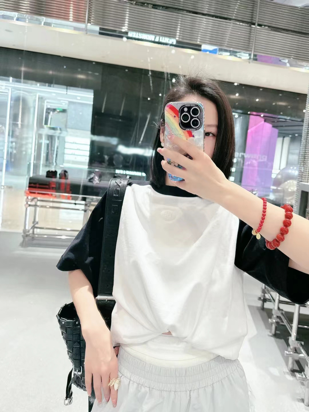 Xiaozhong 2024 봄과 여름 새로운 흑백 라운드 넥 반팔 느슨한 패션 여성용 반팔 티셔츠