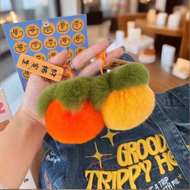 뜨거운 판매 렉스 토끼 모피 좋은 일이 일어납니다 펜던트 작은 감 자동차 키 체인 슈퍼 귀여운 플러시 가방 펜던트 도매