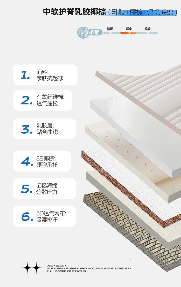 새로운 비 인쇄 부드럽고 편안한 라텍스 메모리 폼 코코넛 팜 매트 싱글 더블 학생 매트스토어 가기