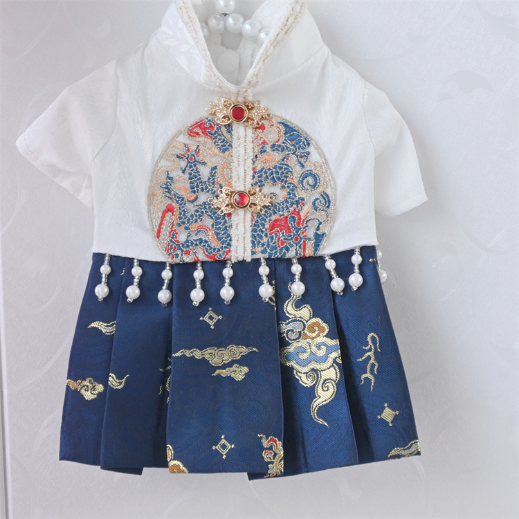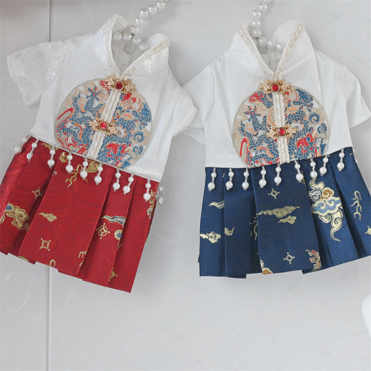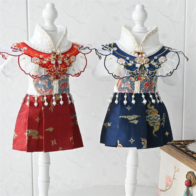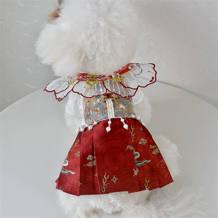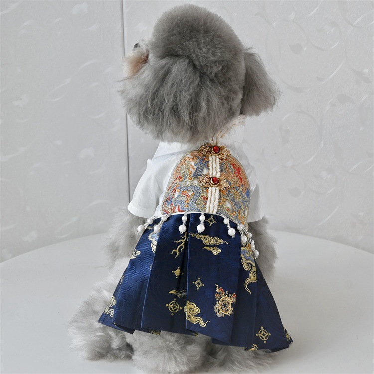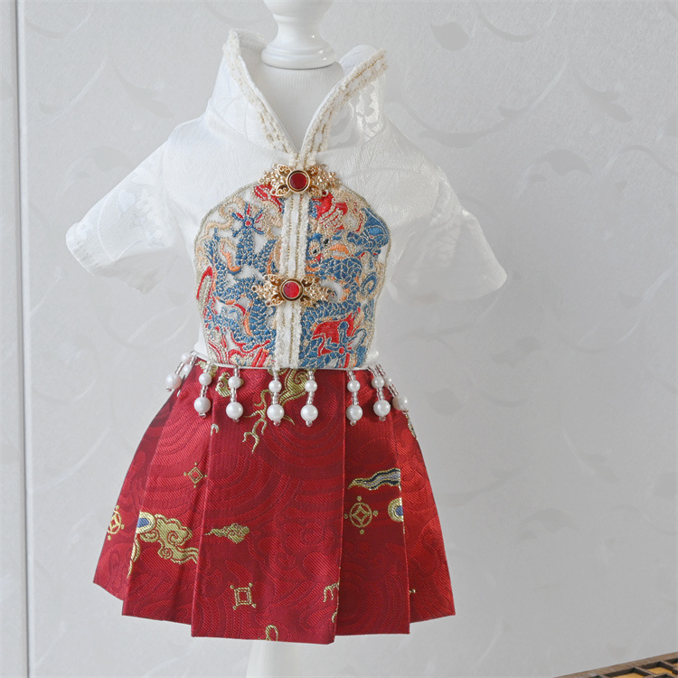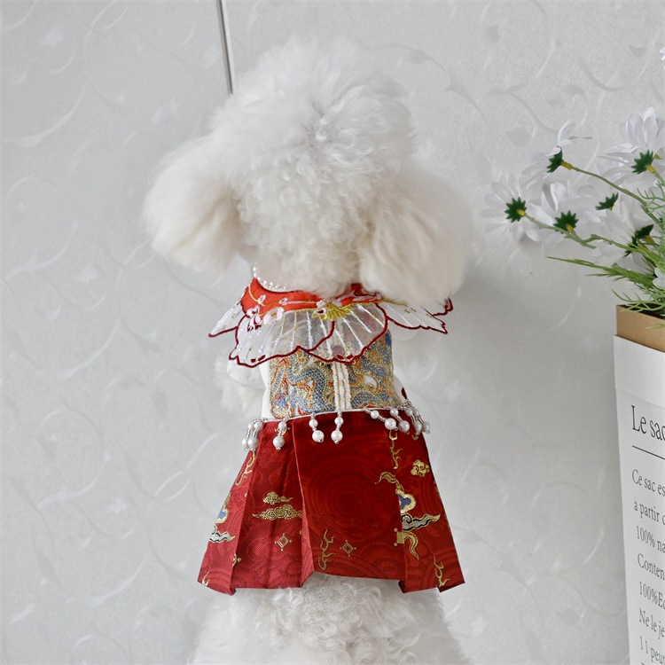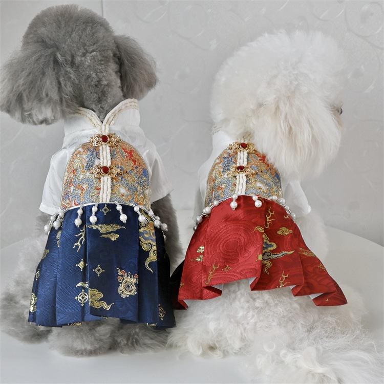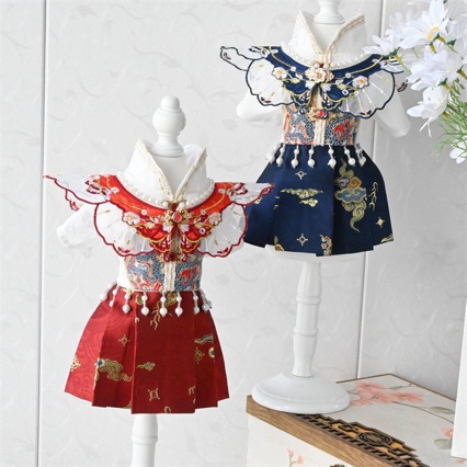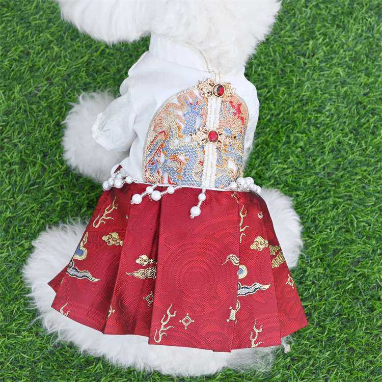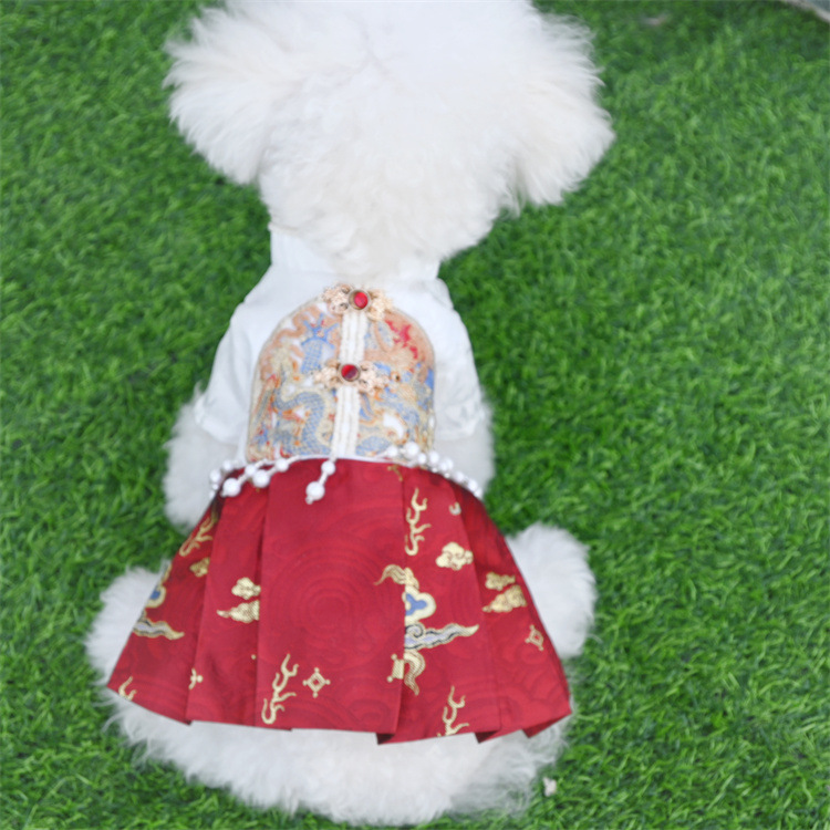 2024 새로운 용 패턴 국가 스타일 애완 동물 원피스 조끼 원피스 고양이 개 옷 고대 스타일 공장 원피스 배달