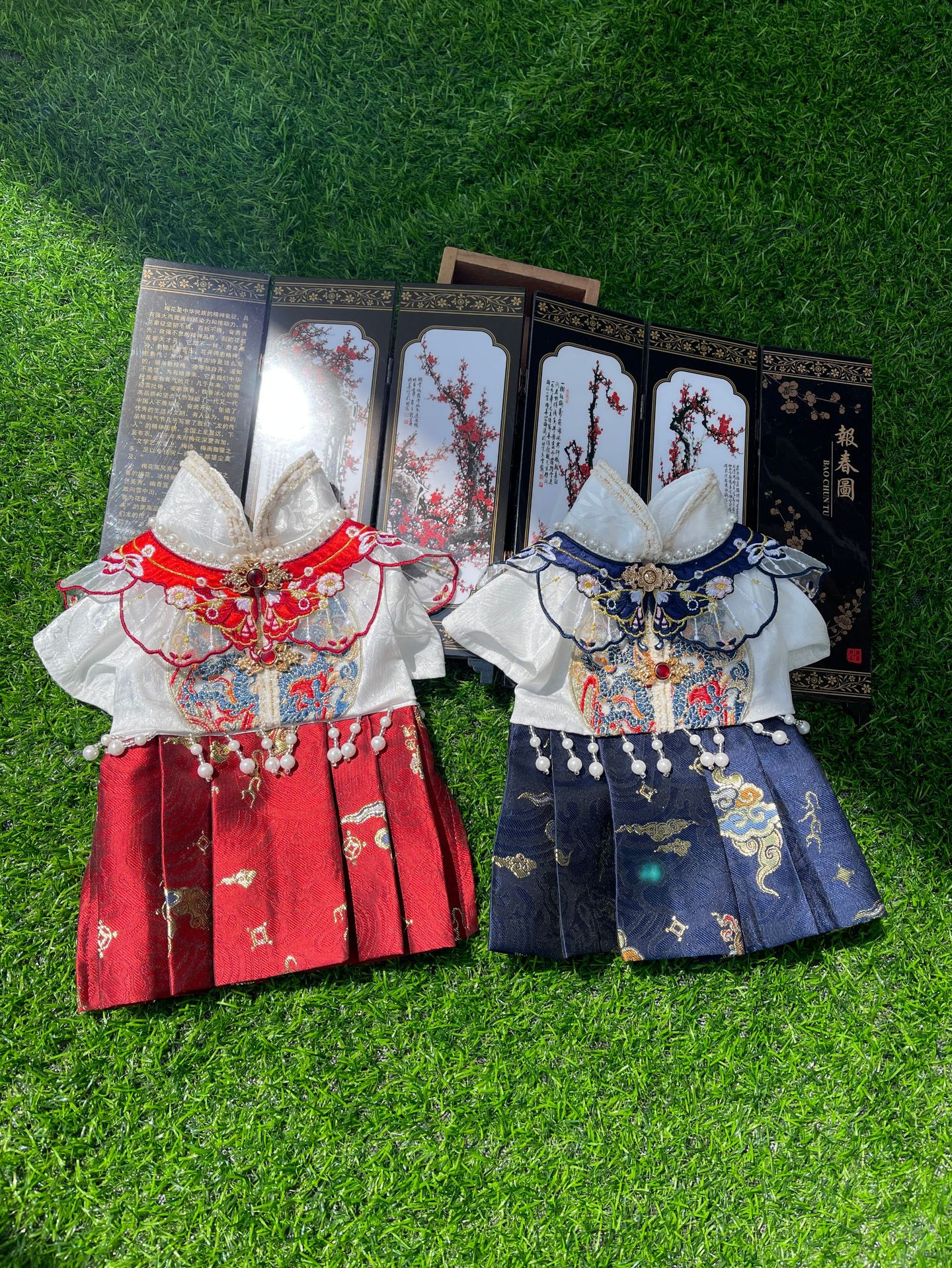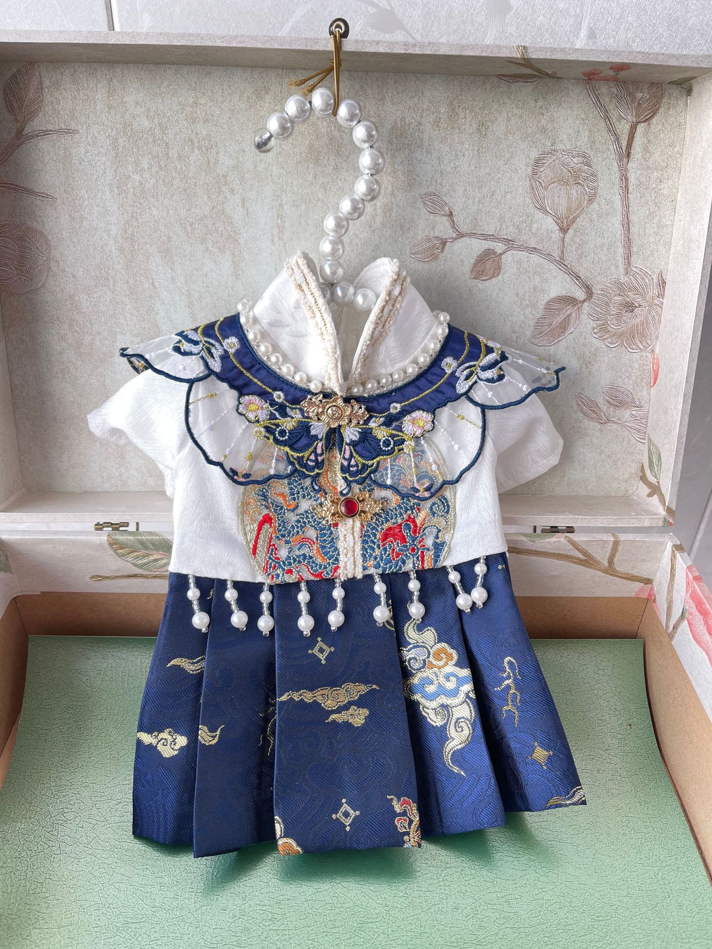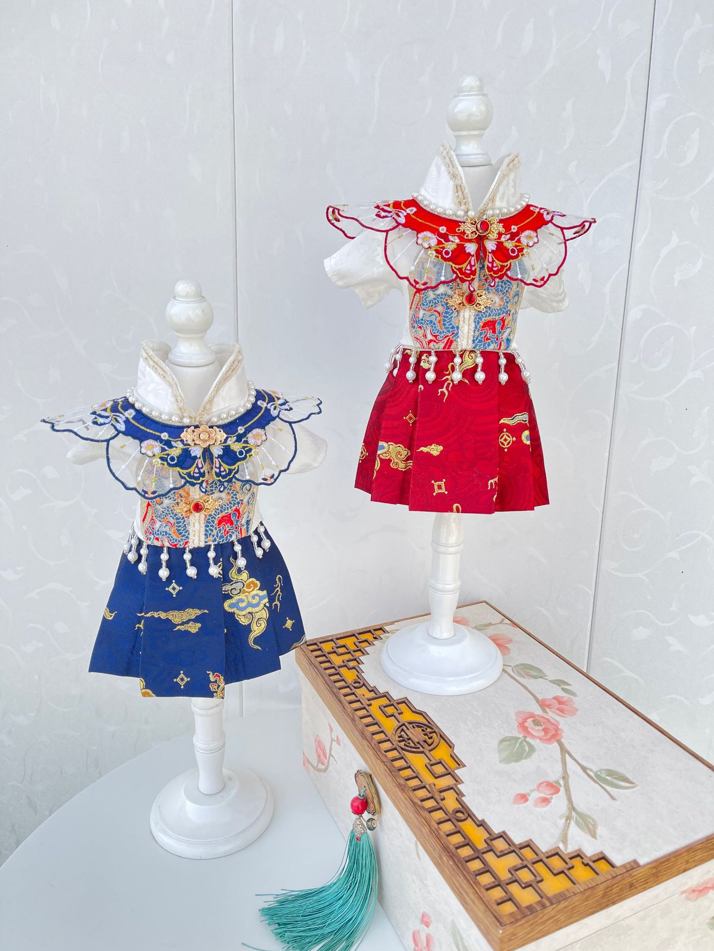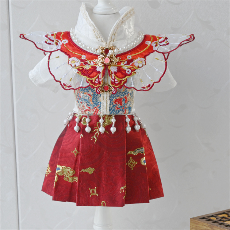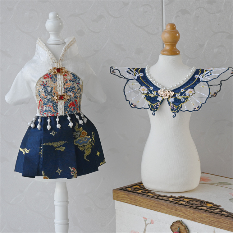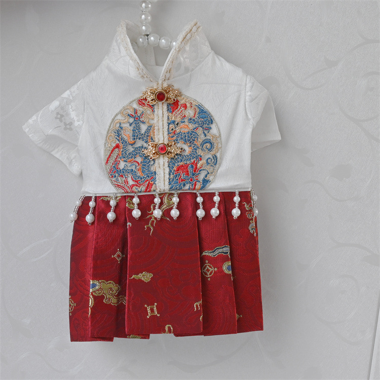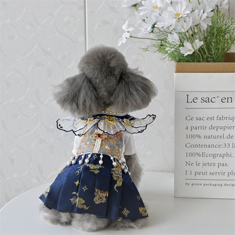 2024 새로운 용 패턴 국가 스타일 애완 동물 원피스 조끼 원피스 고양이 개 옷 고대 스타일 공장 원피스 배달