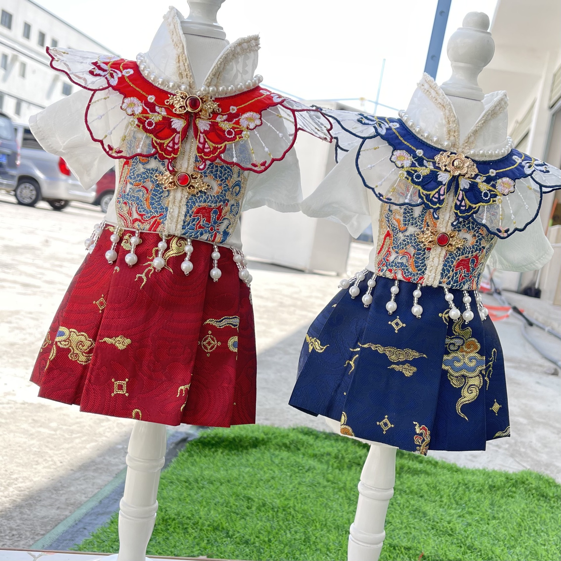 2024 새로운 용 패턴 국가 스타일 애완 동물 원피스 조끼 원피스 고양이 개 옷 고대 스타일 공장 원피스 배달스토어 가기