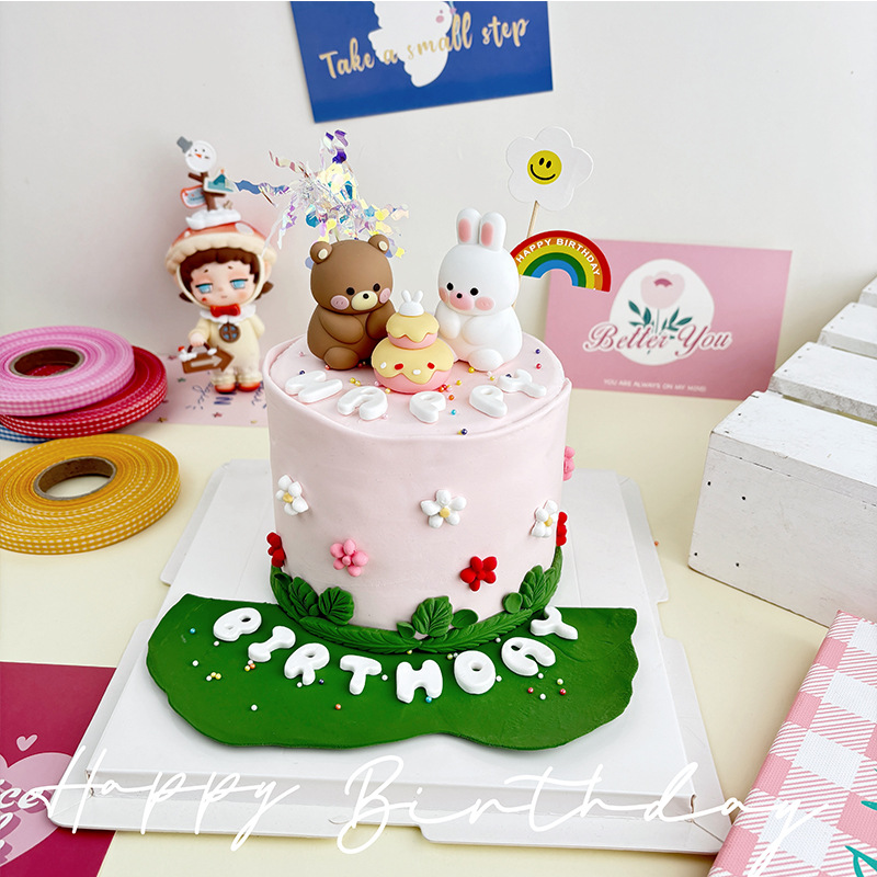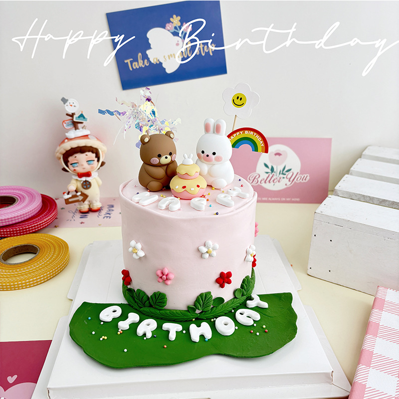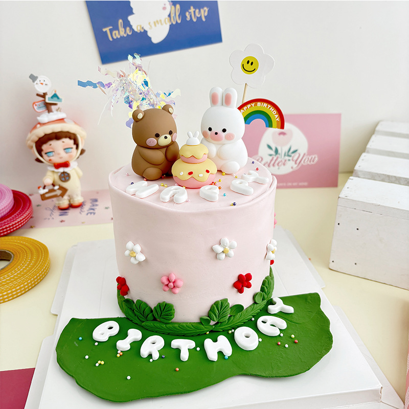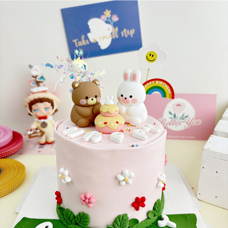 온라인 유명 인사 인 스타일 곰 토끼 케이크 뚱뚱한 곰과 뚱뚱한 토끼 어린이 생일 케이크 장식 귀여운 장식품스토어 가기