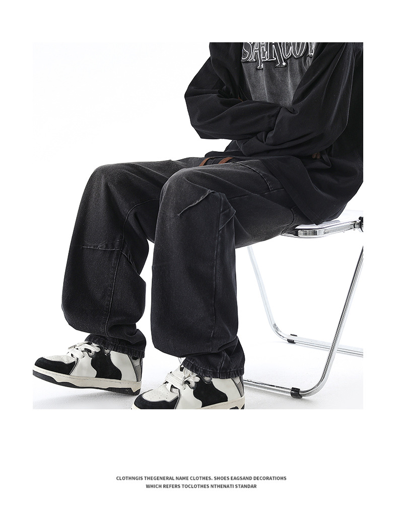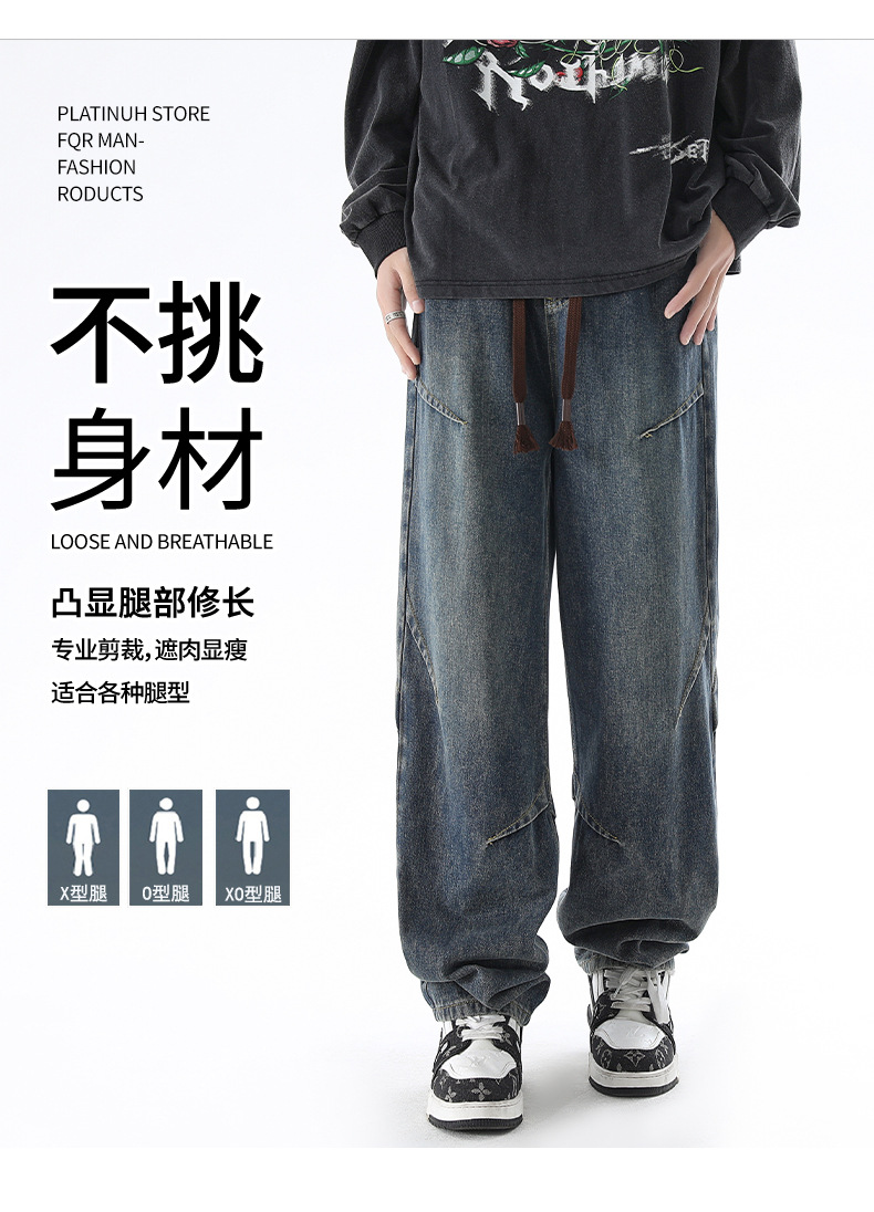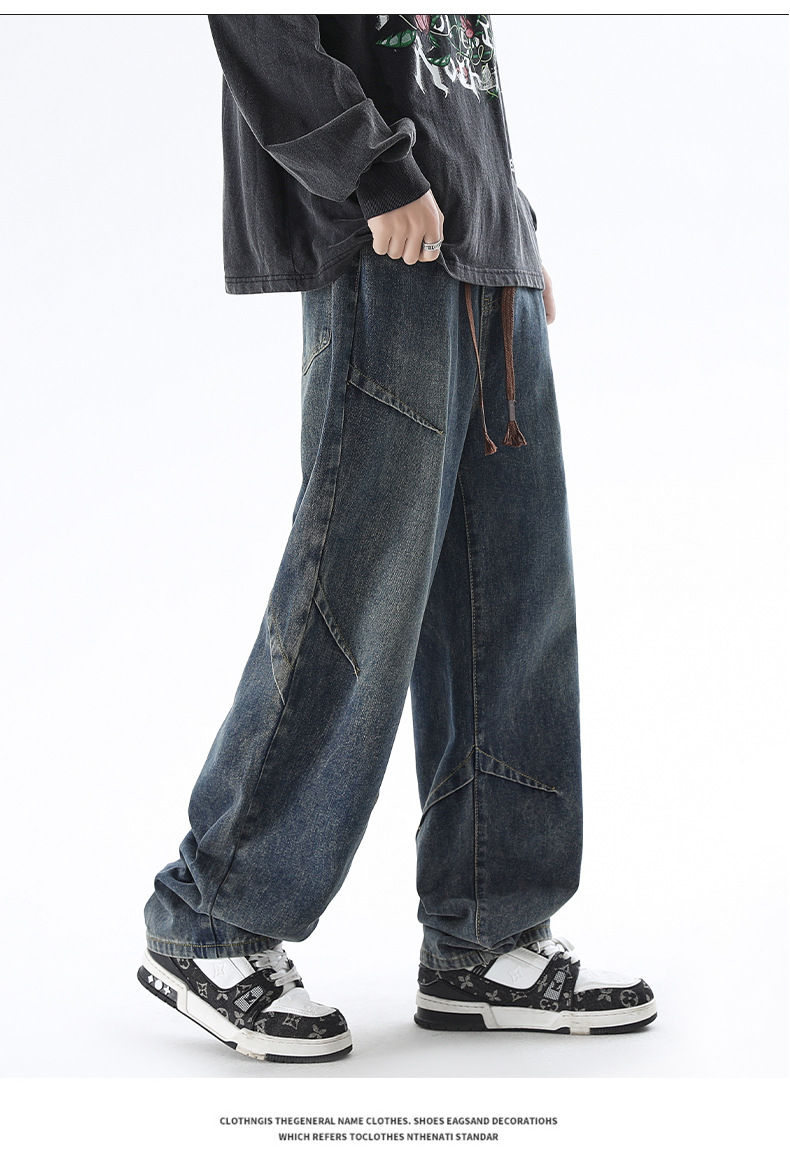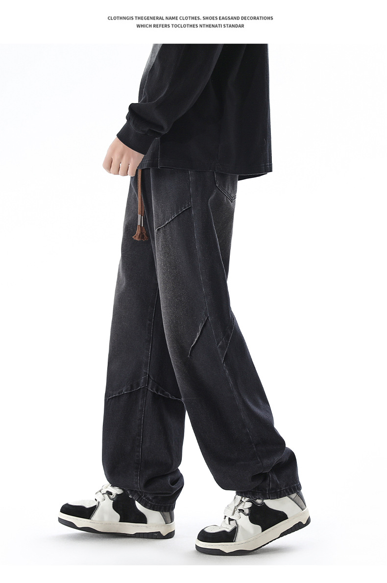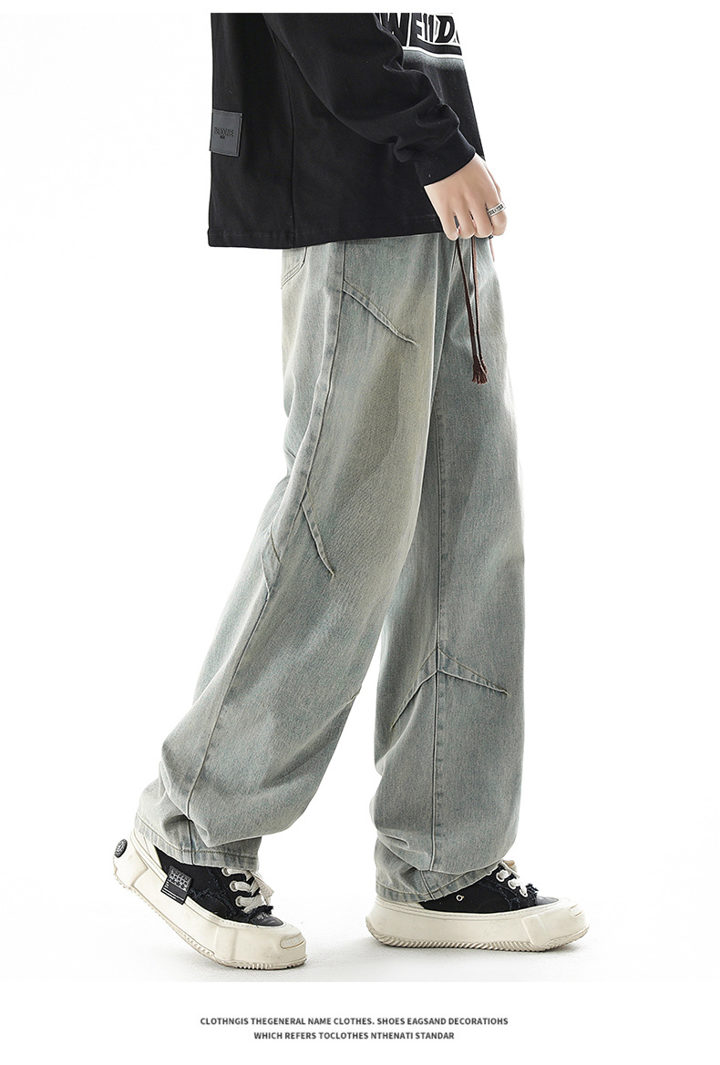 청바지 남성 봄과 여름 새로운 미국 남성 하이 스트리트 디자인이 느슨한 스트레이트 드로 스트링 남성용 롱 팬츠를 주름스토어 가기