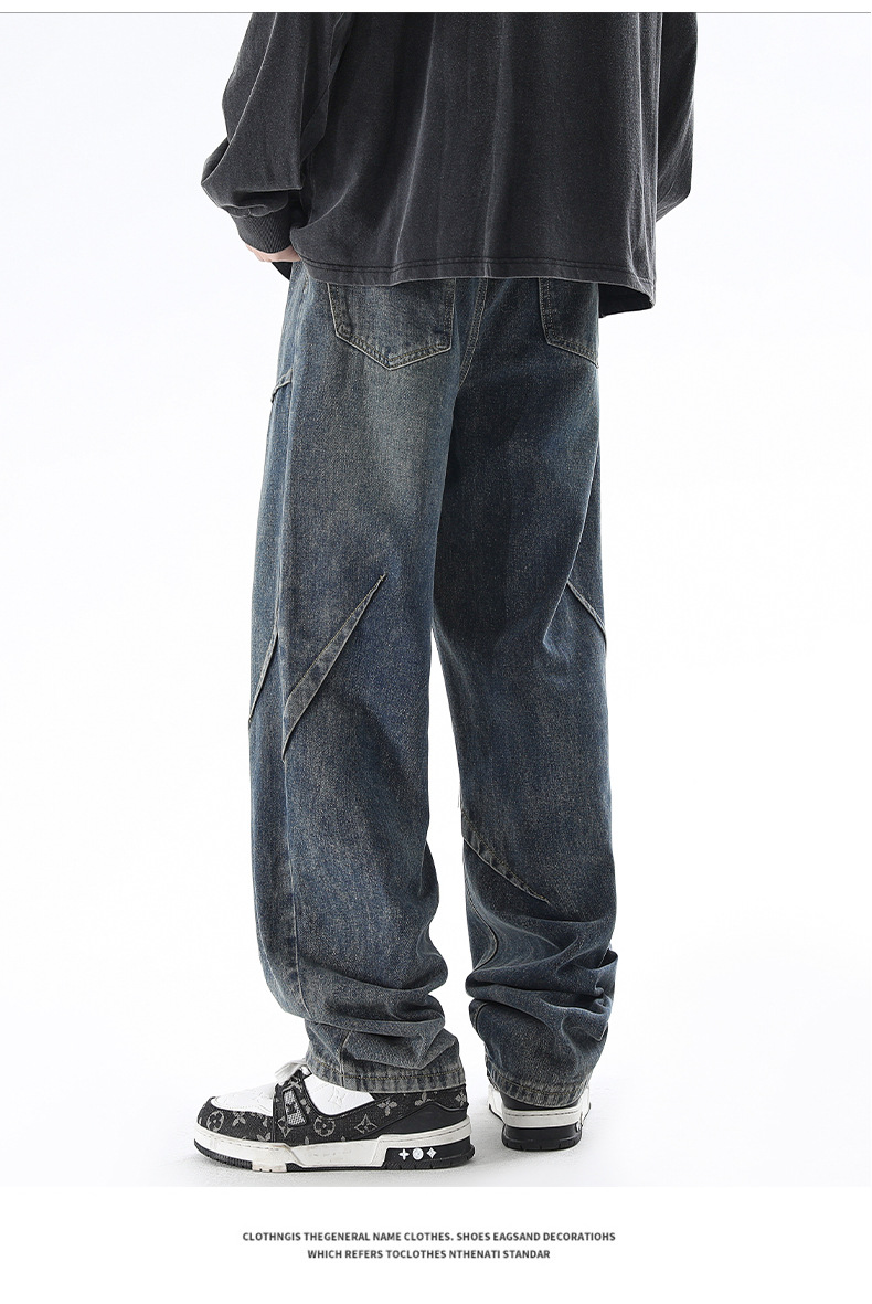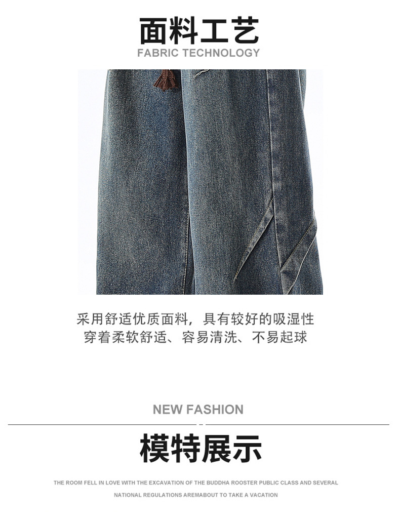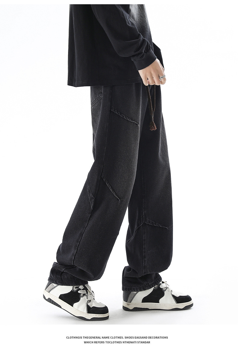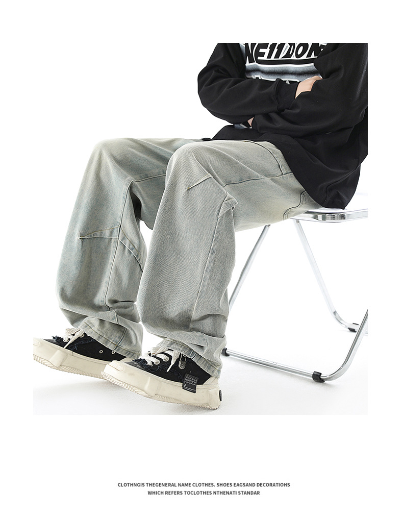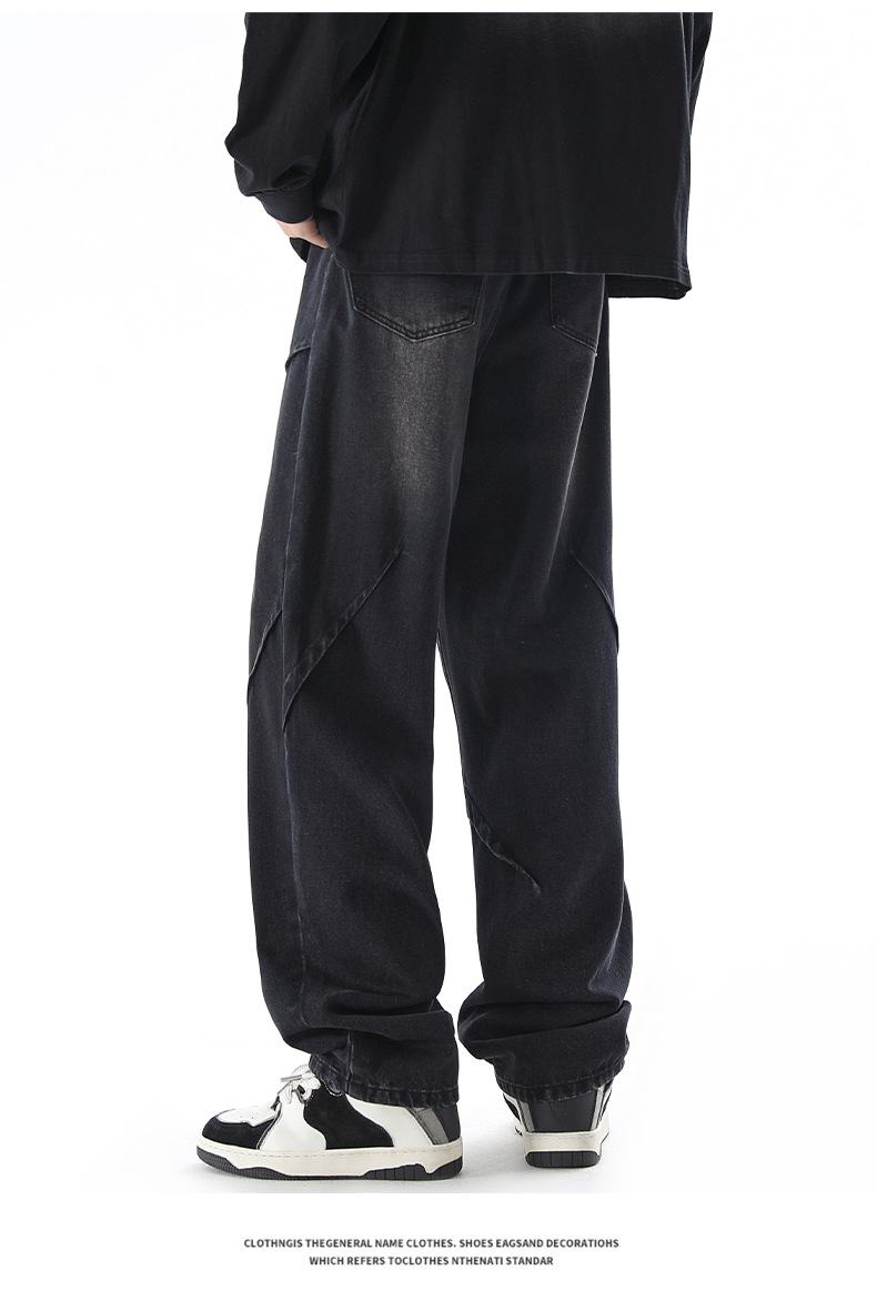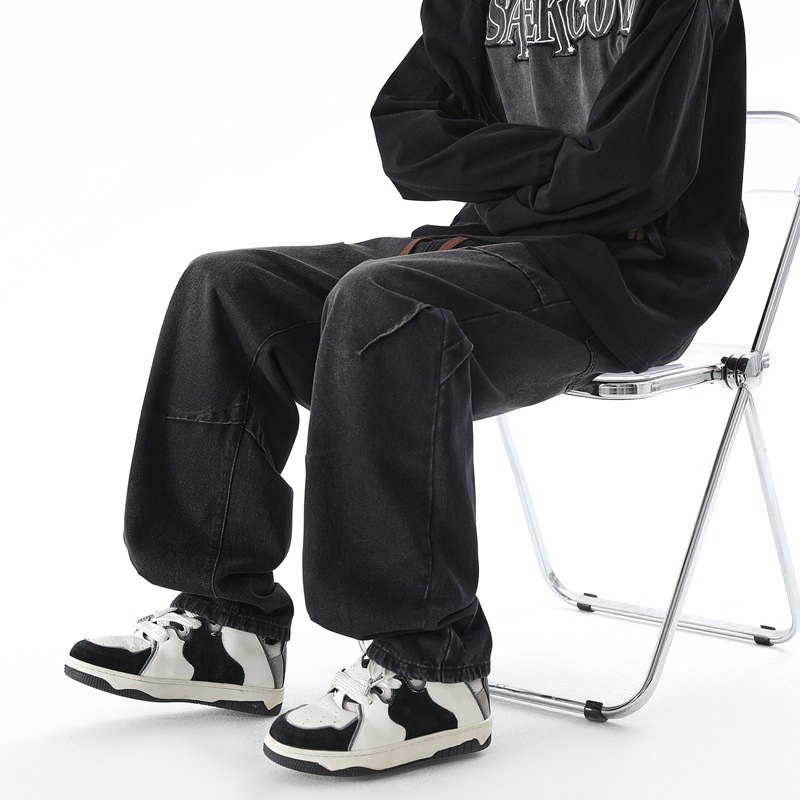 청바지 남성 봄과 여름 새로운 미국 남성 하이 스트리트 디자인이 느슨한 스트레이트 드로 스트링 남성용 롱 팬츠를 주름스토어 가기