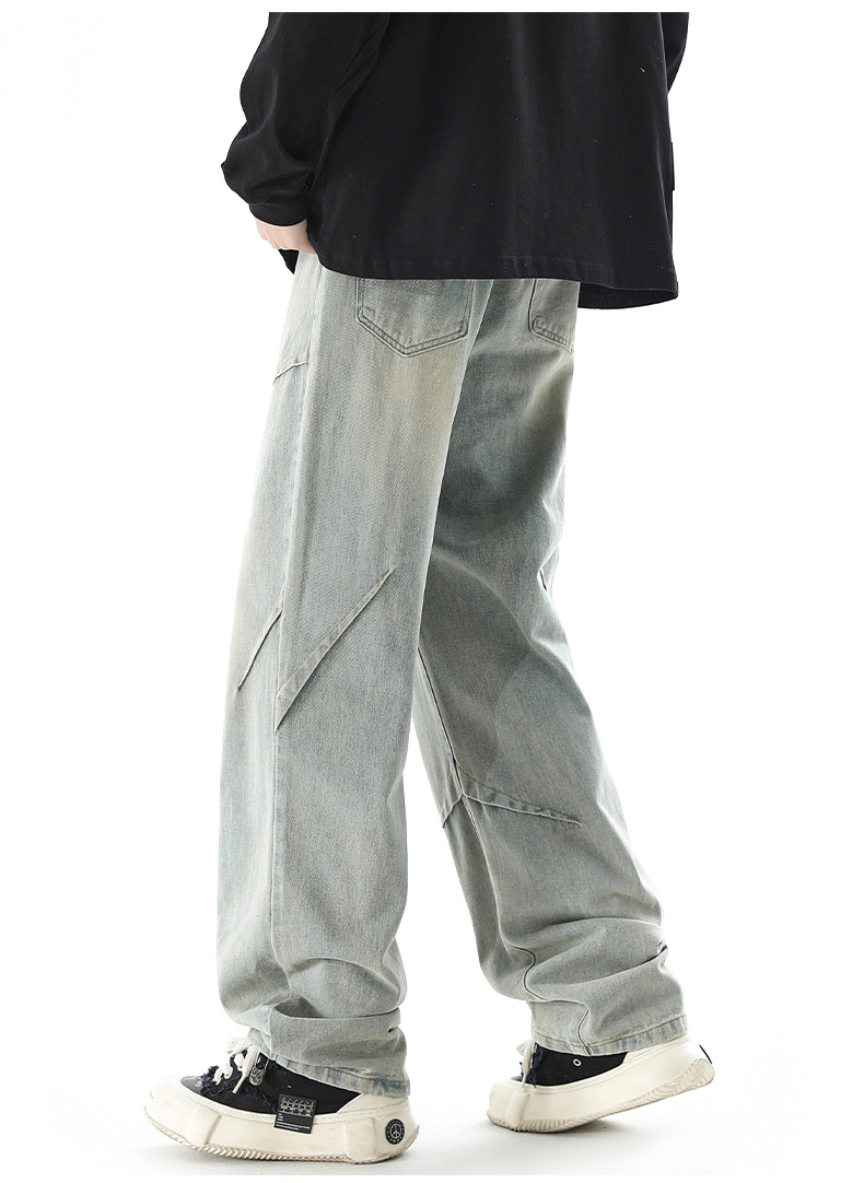 청바지 남성 봄과 여름 새로운 미국 남성 하이 스트리트 디자인이 느슨한 스트레이트 드로 스트링 남성용 롱 팬츠를 주름