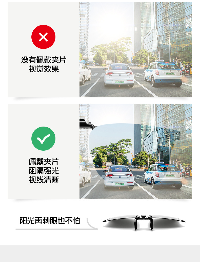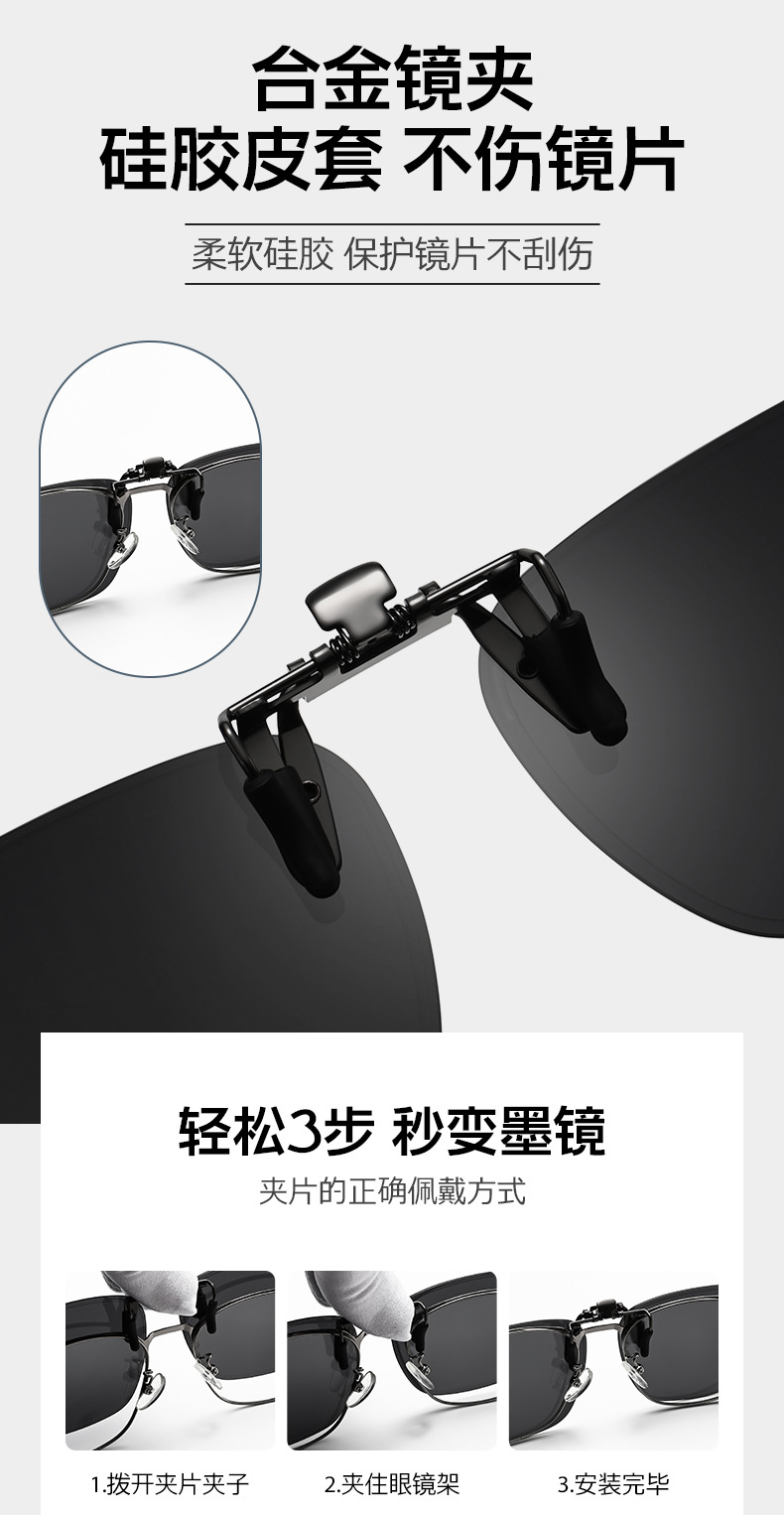 운전자 근시 선글라스 편광 야간 투시경 안경 클립을 운전하는 새로운 색상 변경 선글라스 클립 남성과 여성