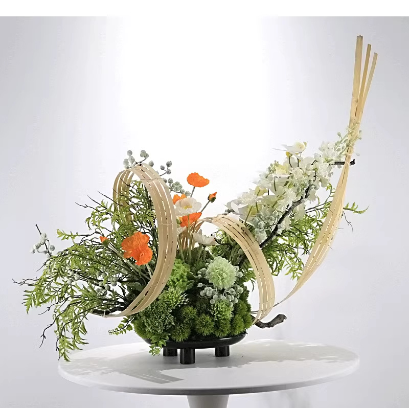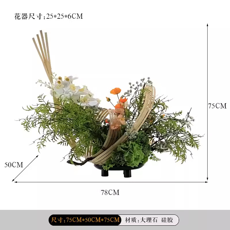 새로운 중국 풍경 대나무 뗏목 녹색 분재 시뮬레이션 꽃 판매 부서 호텔 레스토랑 발코니 식탁 부드러운 장식