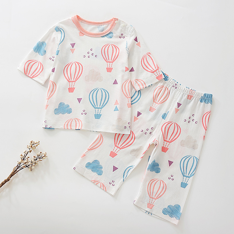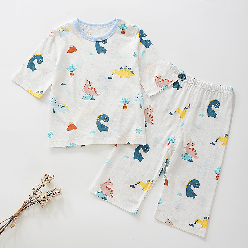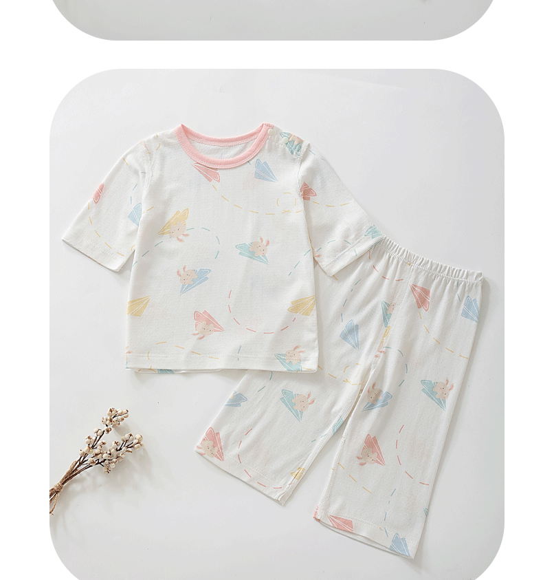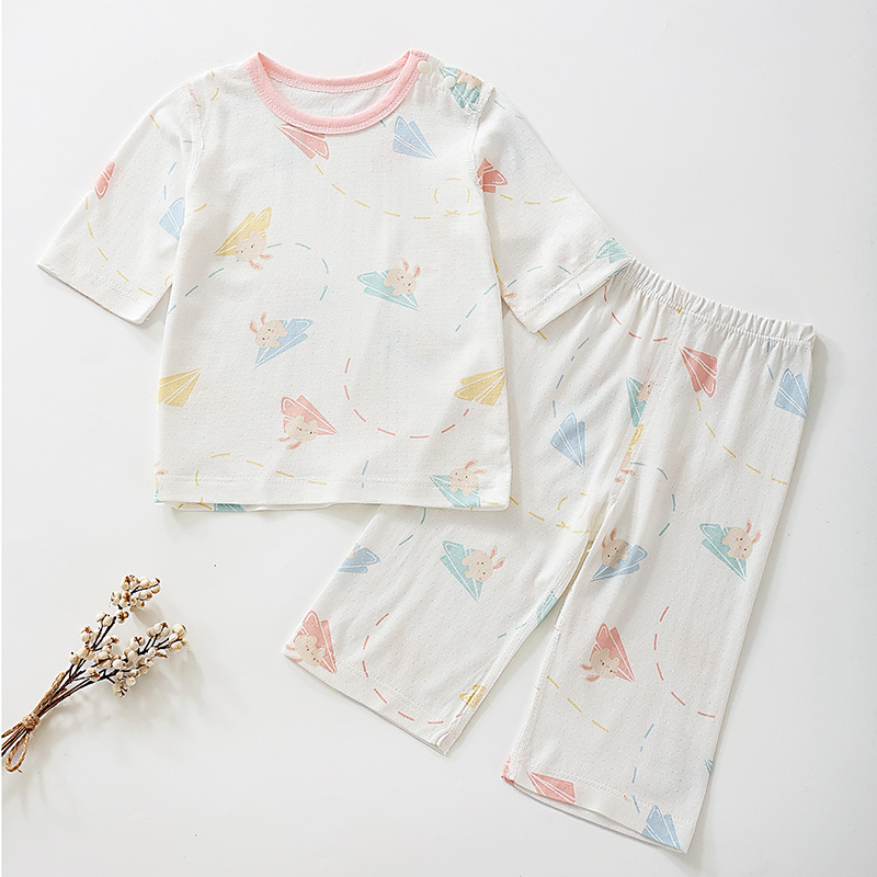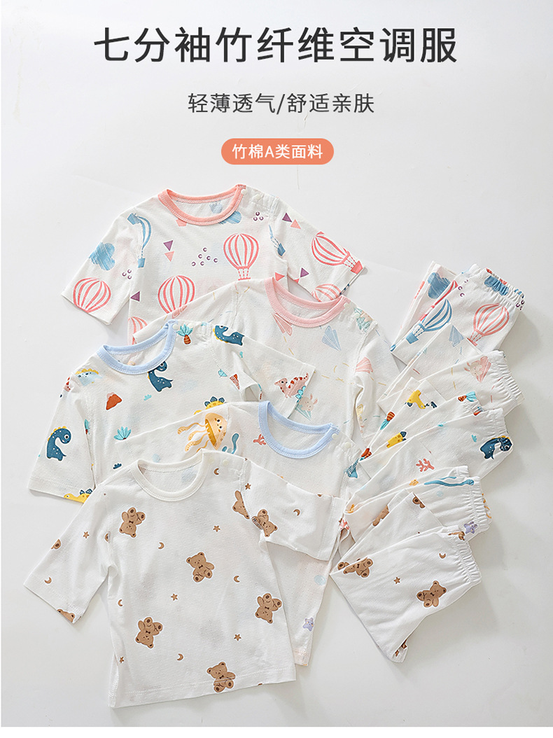 대나무 섬유 7부 소매 정장 어린이 잠옷 여름 얇은 남성과 여성의 아기 에어컨 의류 탑과 바지 투피스 슈트