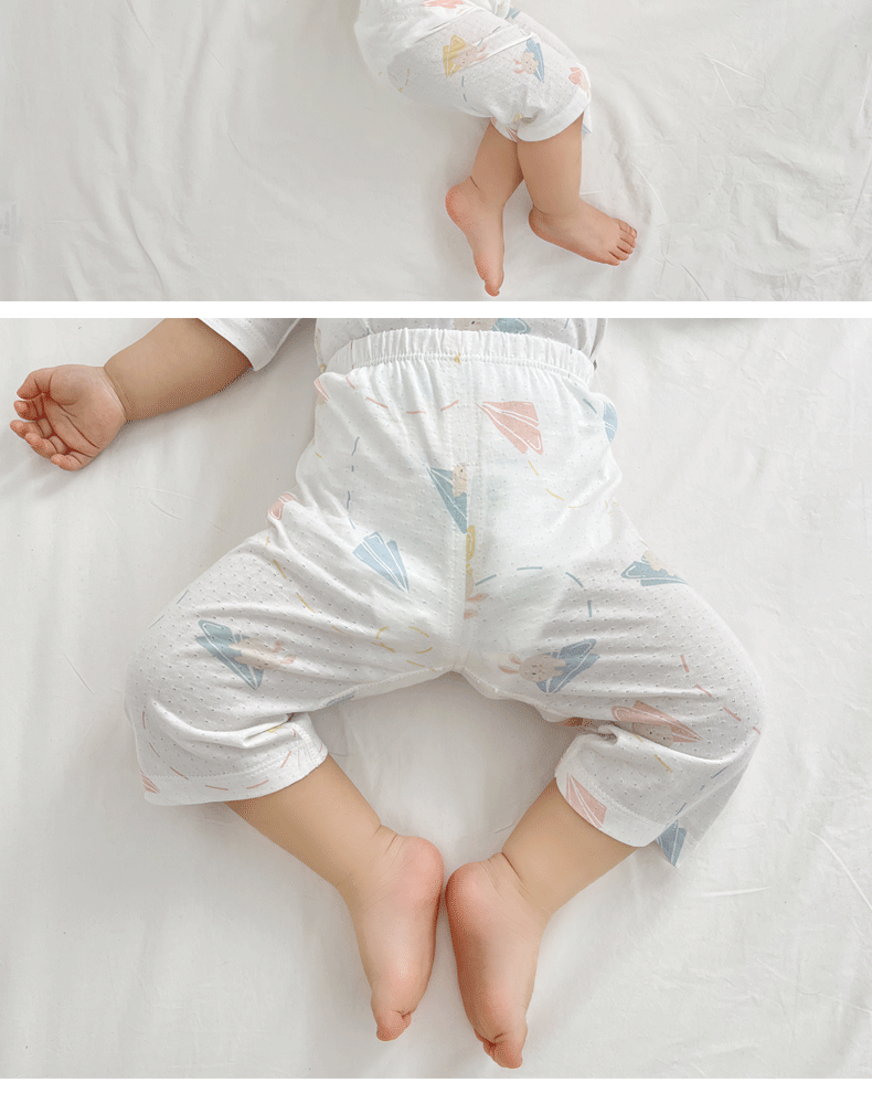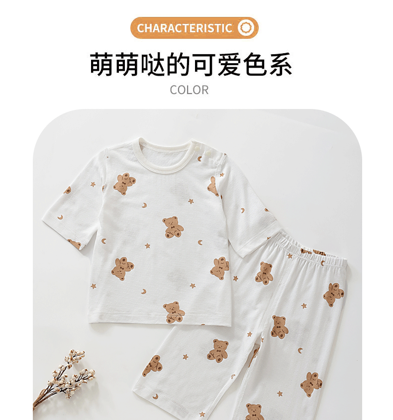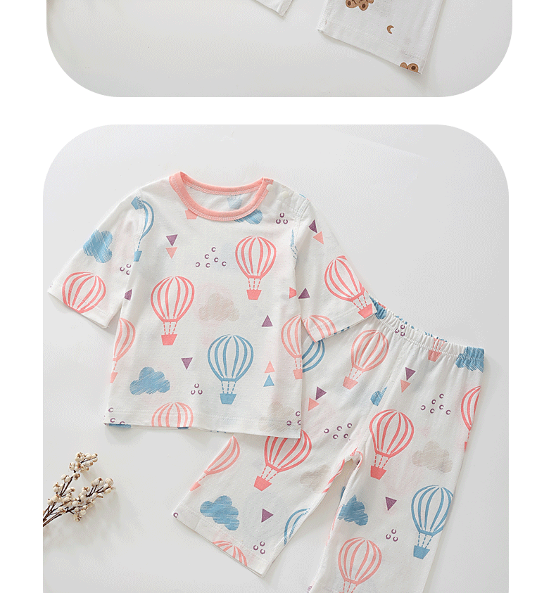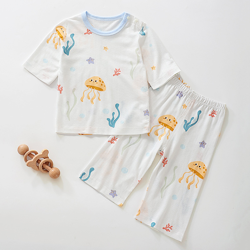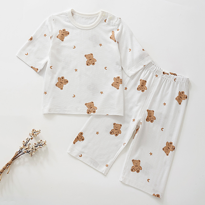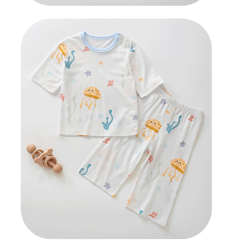 대나무 섬유 7부 소매 정장 어린이 잠옷 여름 얇은 남성과 여성의 아기 에어컨 의류 탑과 바지 투피스 슈트