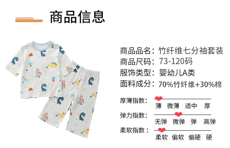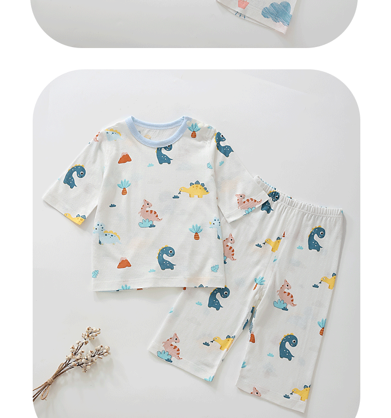 대나무 섬유 7부 소매 정장 어린이 잠옷 여름 얇은 남성과 여성의 아기 에어컨 의류 탑과 바지 투피스 슈트스토어 가기