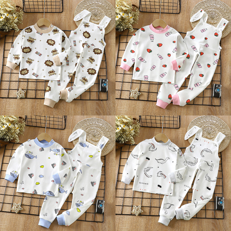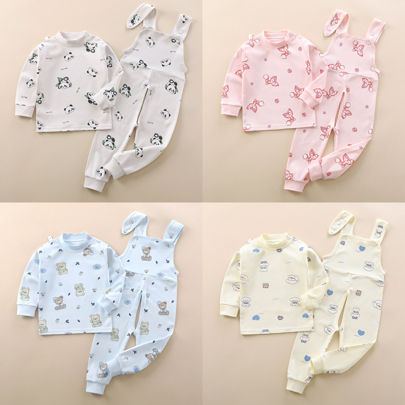 어린이 속옷 세트 투피스 세트 아기 봄과 가을 바지 세트 순수한면 프린트 오픈 엔드 가을 옷 긴 바지 세트스토어 가기