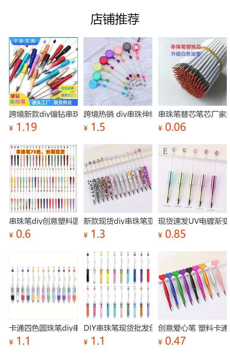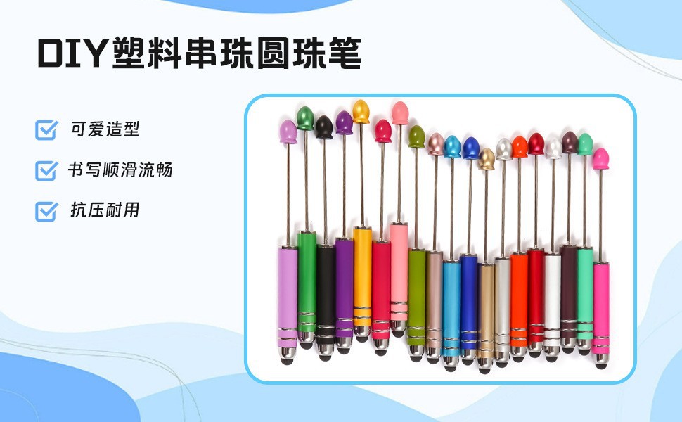 국경 간 뜨거운 판매 구슬 터치 펜 DIY 수제 구슬 볼펜 투인원 터치 볼펜 재고 도매