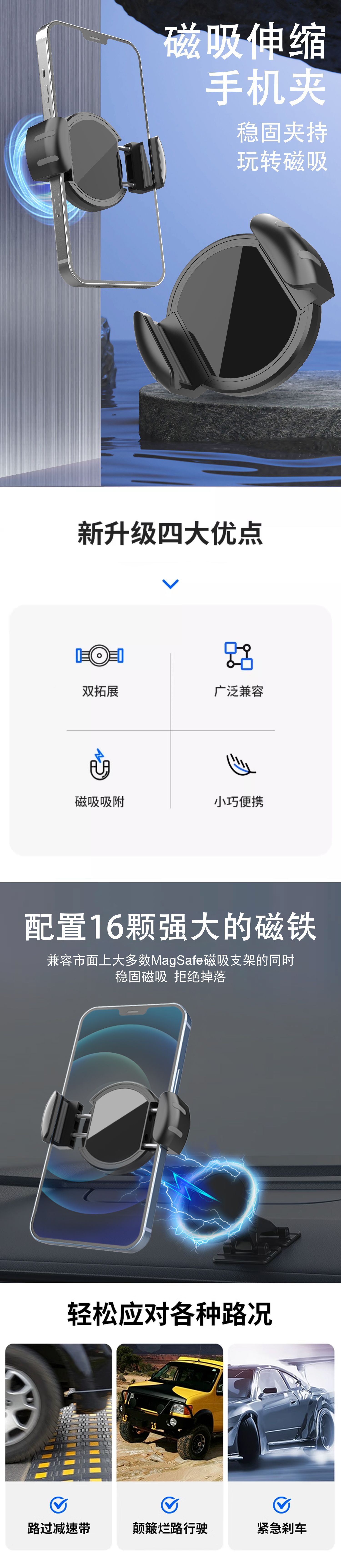 새로운 진공 흡입 자동차 디스플레이 브래킷 마그네틱 휴대 전화 마그네틱 클립 자동차 서스펜션 스크린 액세서리스토어 가기