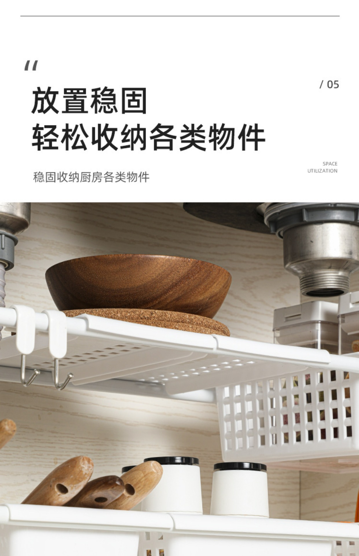 주방 캐비닛 레이어 파티션 스토리지 랙 스토리지 바구니 펀치 프리 텔레스코픽 로드 스토리지 랙 싱크 유물