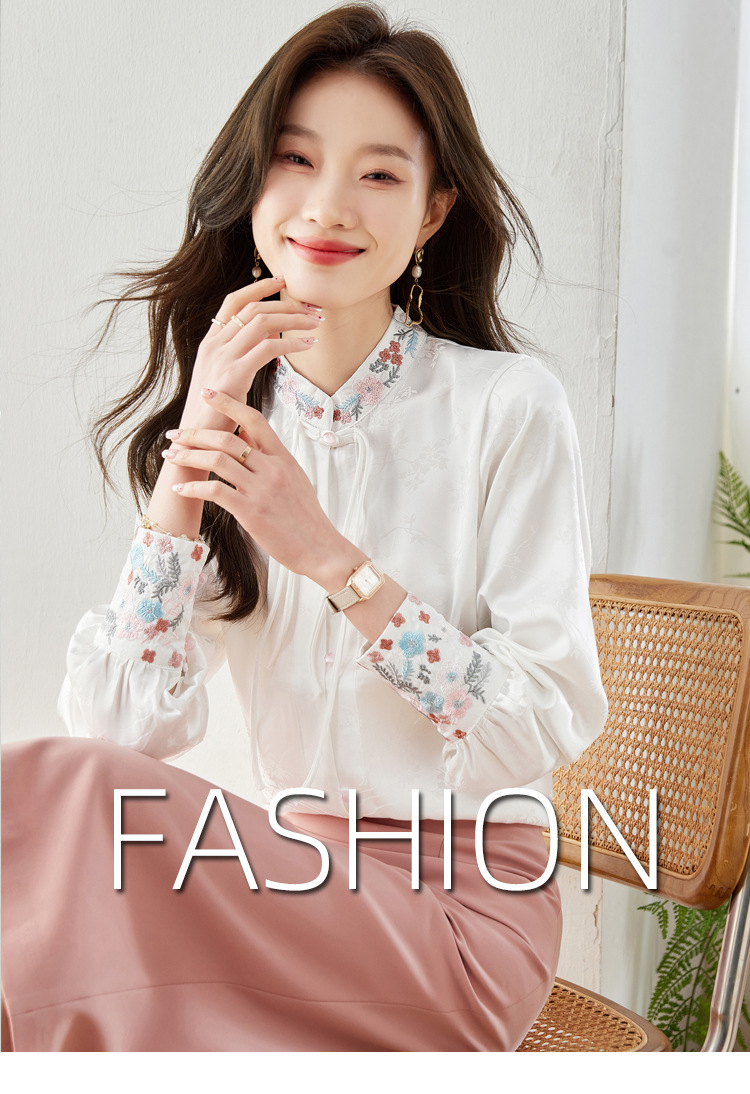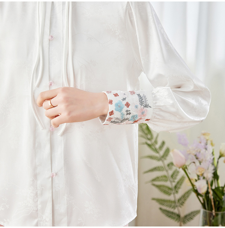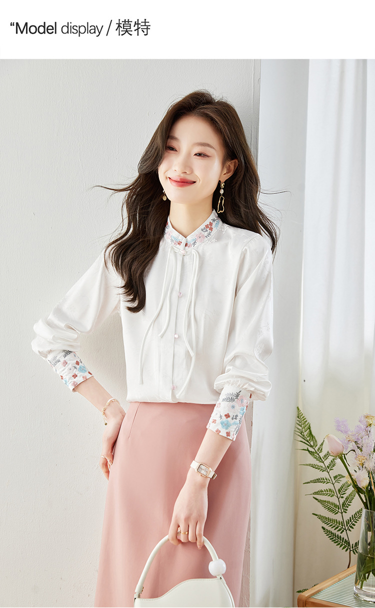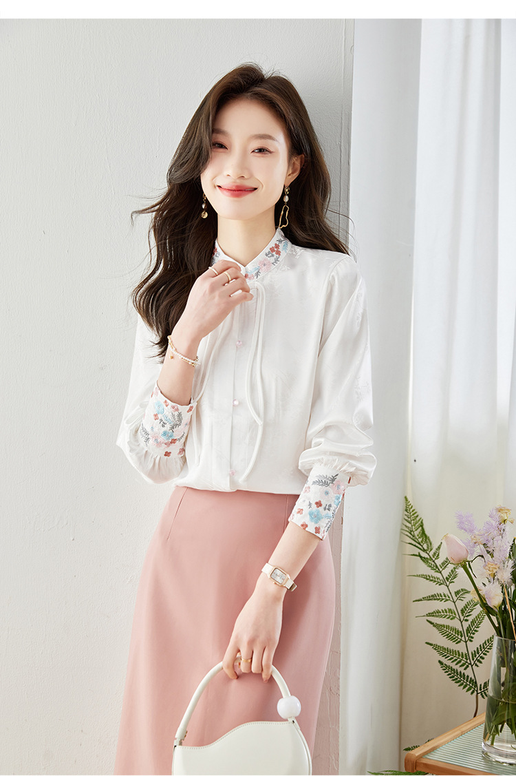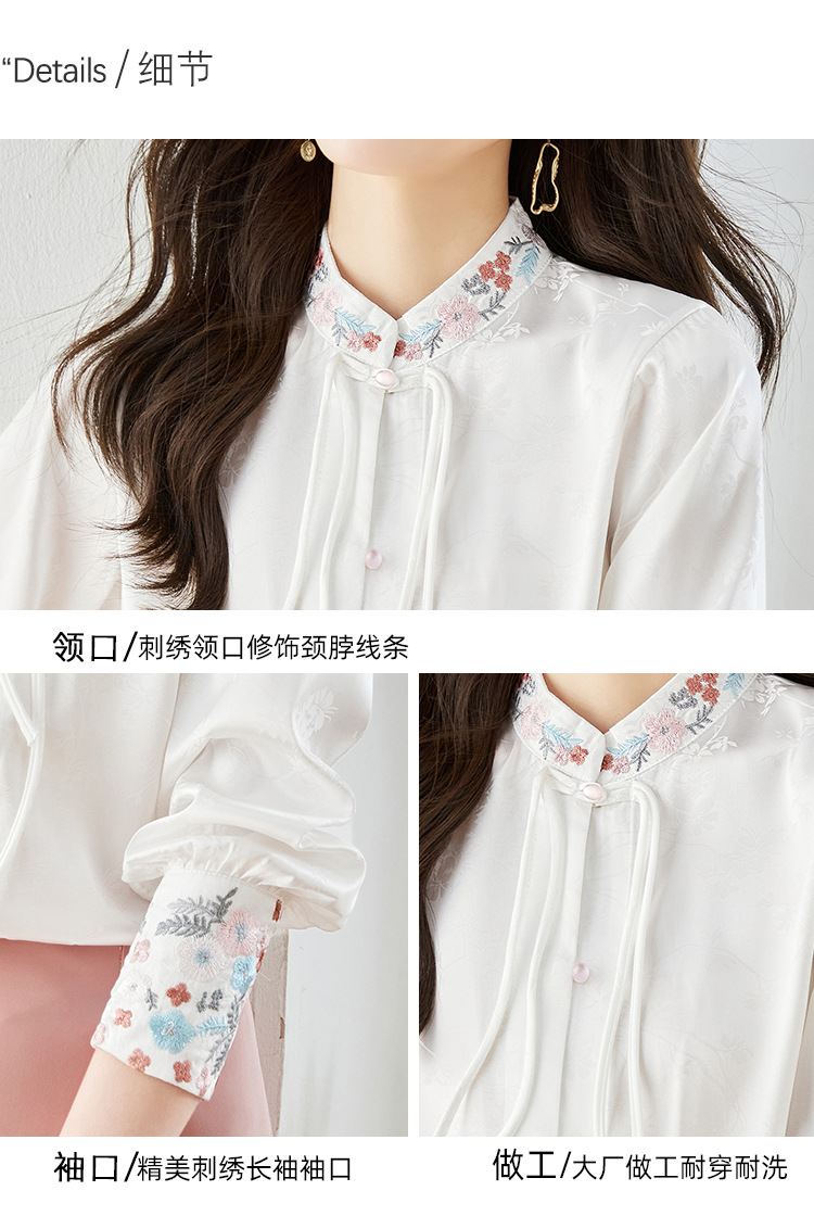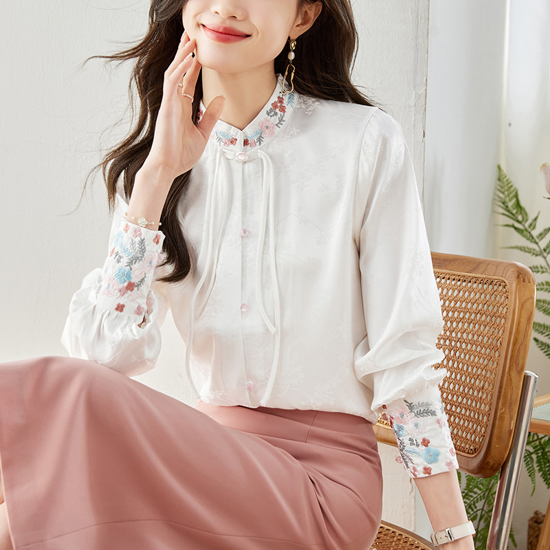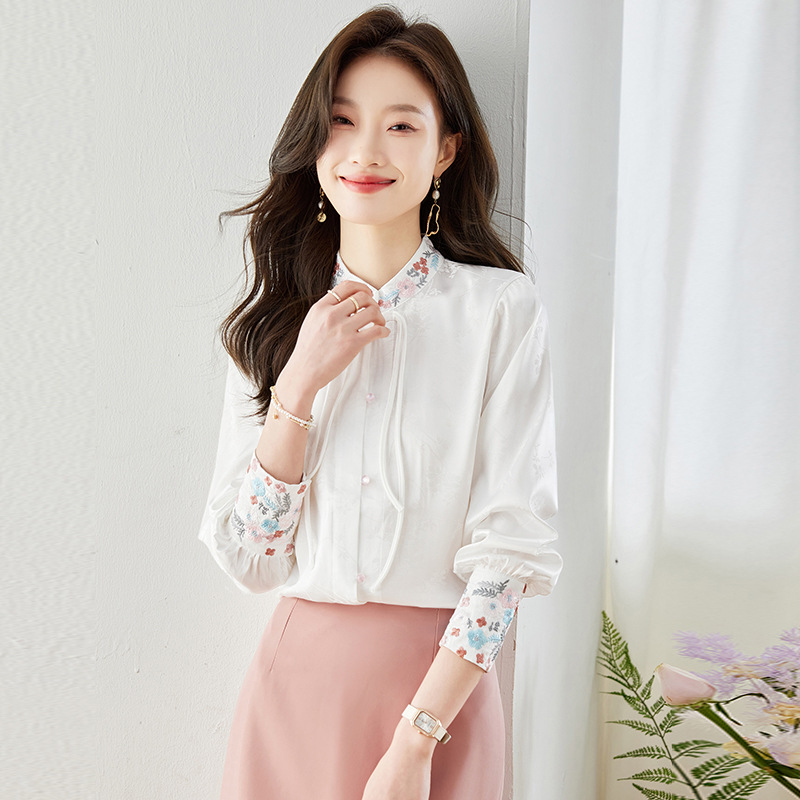 중국 스타일 수 놓은 쉬폰 셔츠 2024 봄 새로운 간단한 유행 올 매치 달콤한 우아한 탑스토어 가기