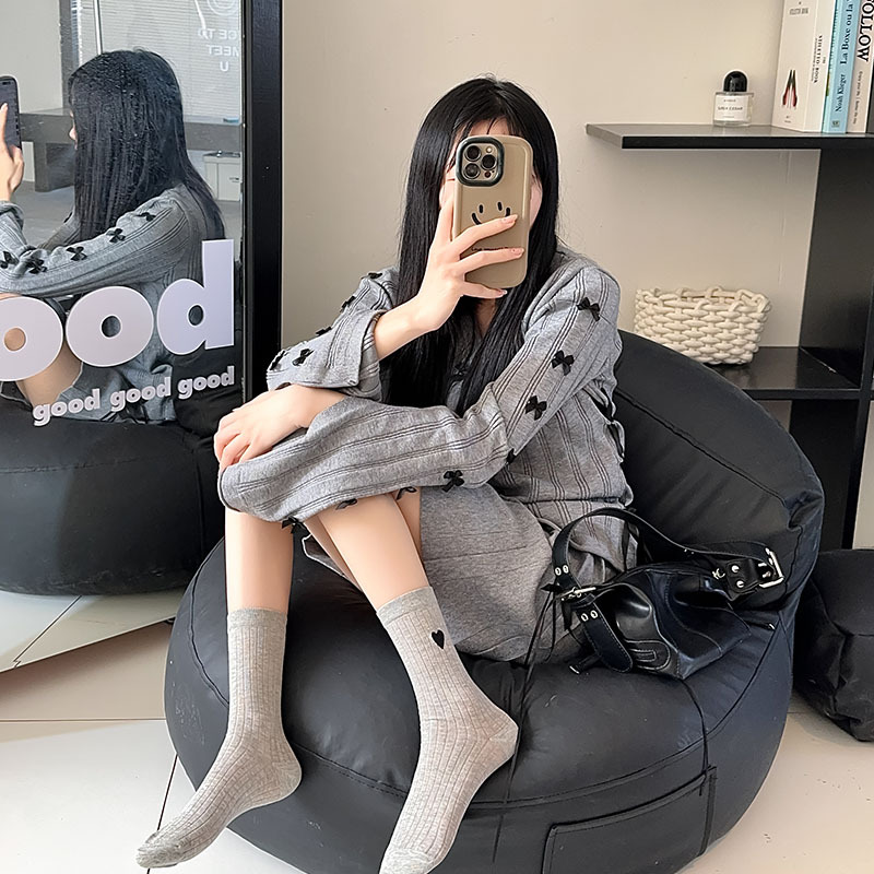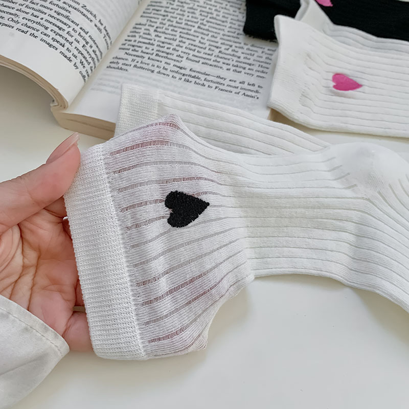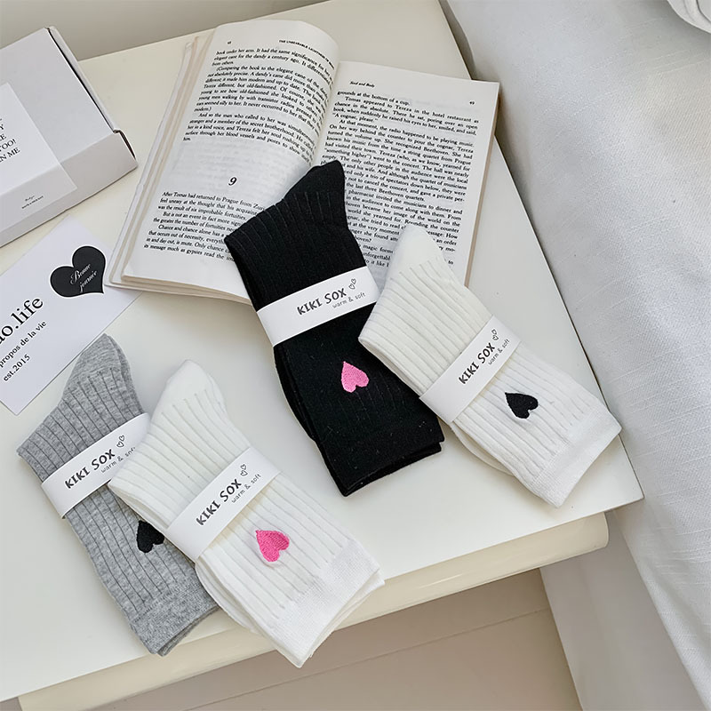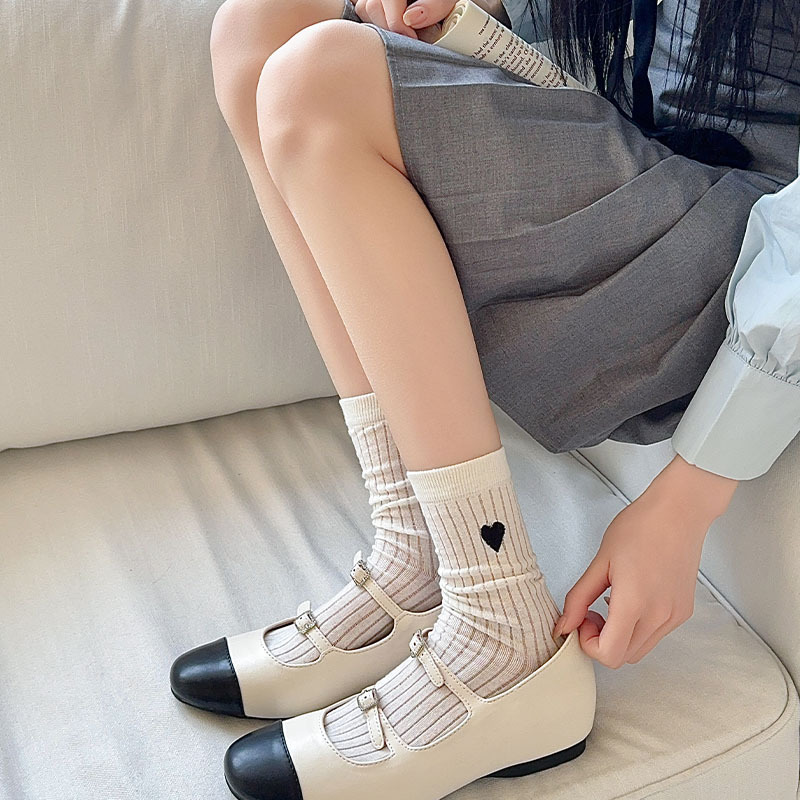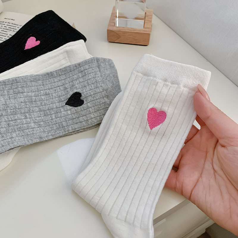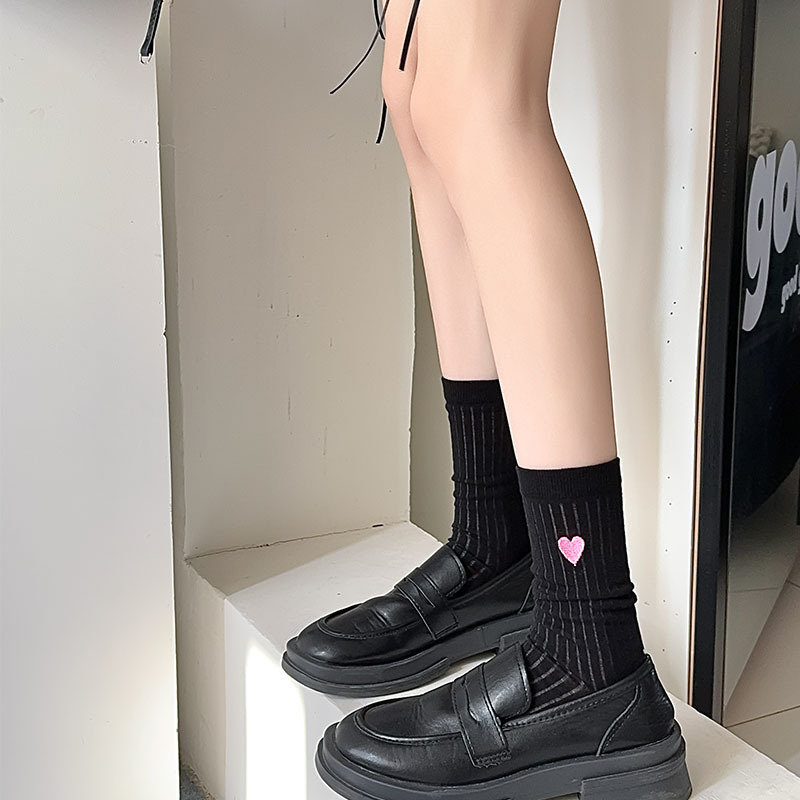 프레피 스타일의 사랑스러운 자수 양말 여성의 중간 종아리 길이 양말 봄과 여름 얇은 통기성 올 매치 일본 귀여운 학생 스타킹