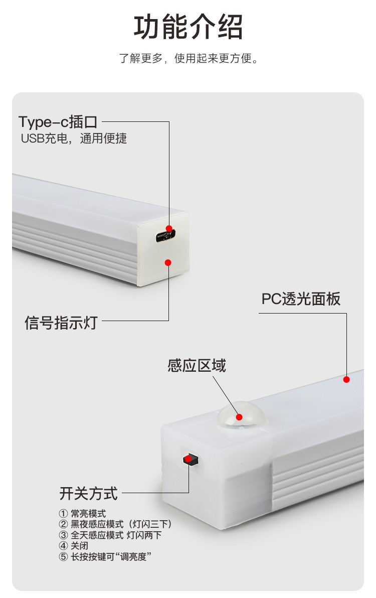 Led 인체 유도 라이트 바 마그네틱 흡입 조명 캐비닛 라이트 옷장 라이트 와인 캐비닛 신발 캐비닛 usb 유도 야간 조명 스트립 충전기스토어 가기