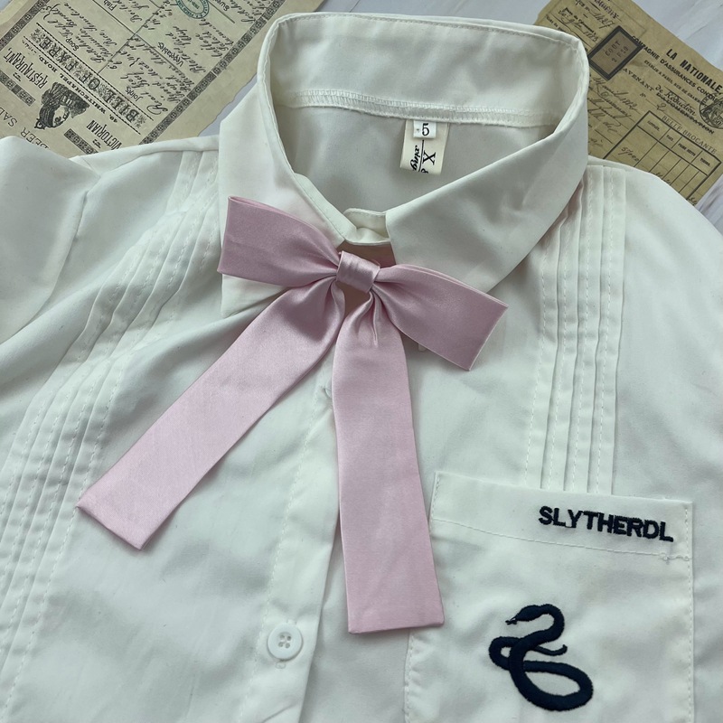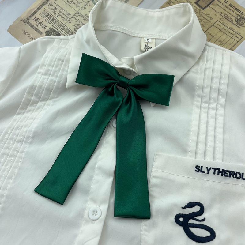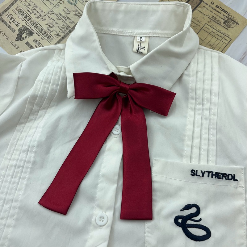 JK 단색 나비 넥타이 작은 긴 손잡이 리본 일본 유니폼 다크 그린 버건디 실크 셔츠 올 매치 활 장식