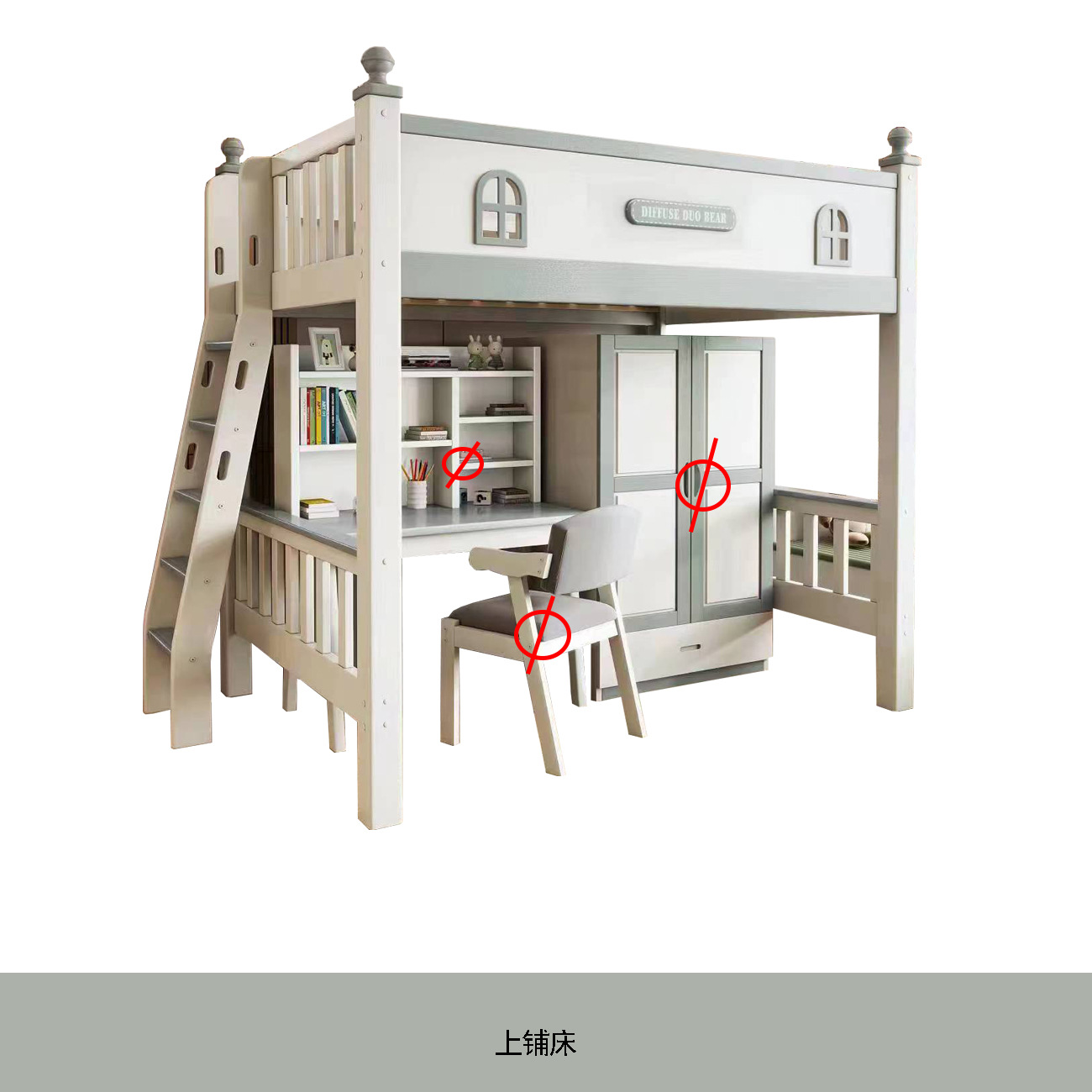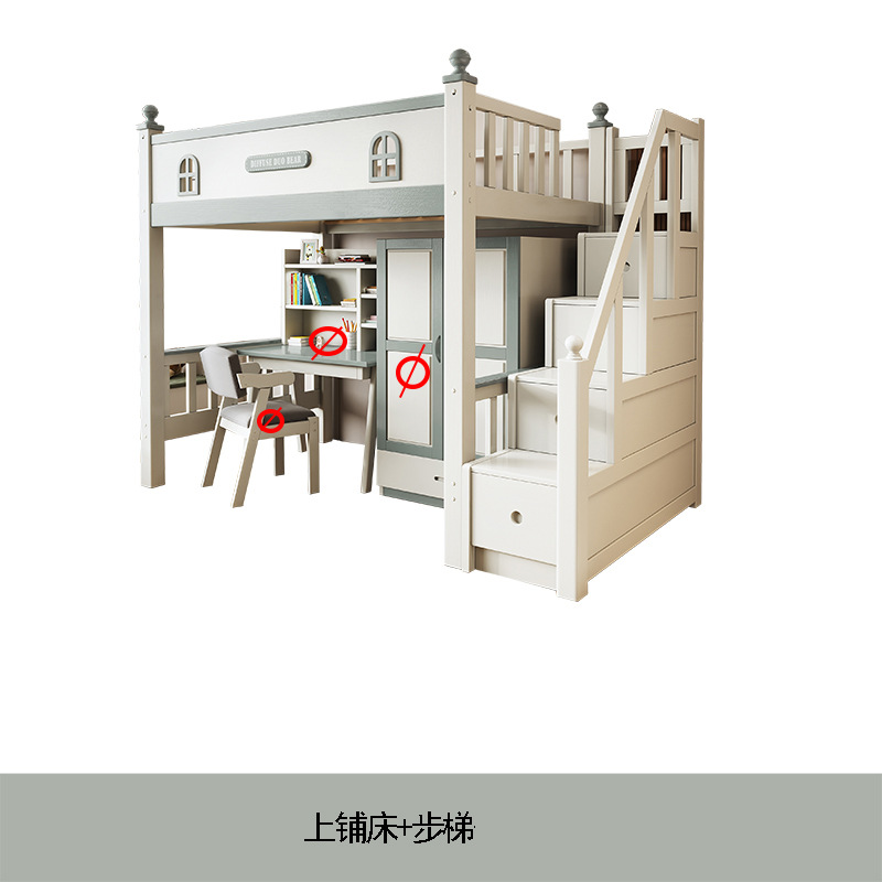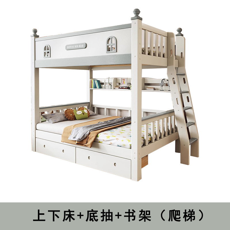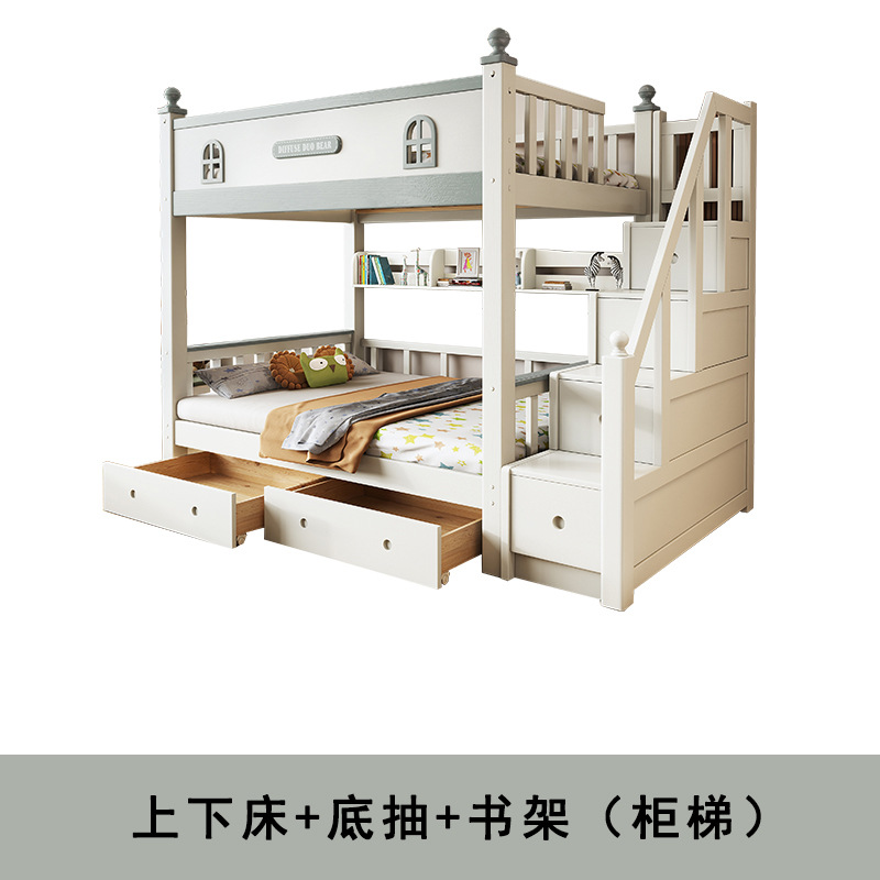 • 상단 및 하단 침대 + 책꽂이 + 하단 서랍 (캐비닛 사다리) 매트리스