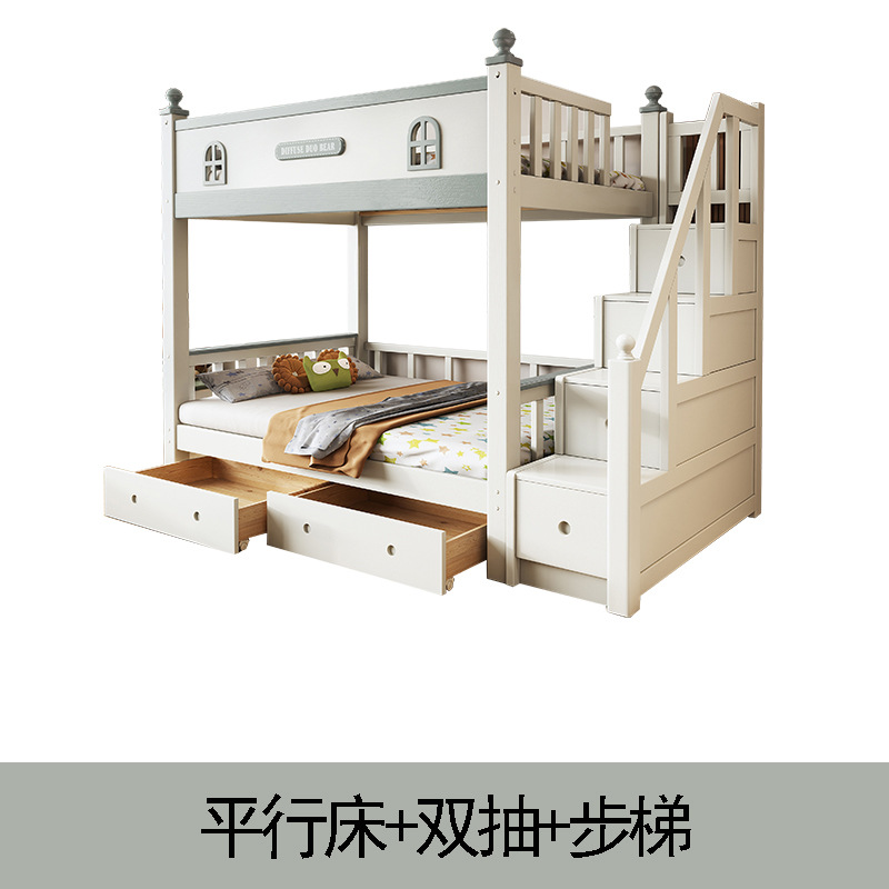 • 상단 및 하단 침대 + 책꽂이 + 하단 서랍 (사다리) 매트리스