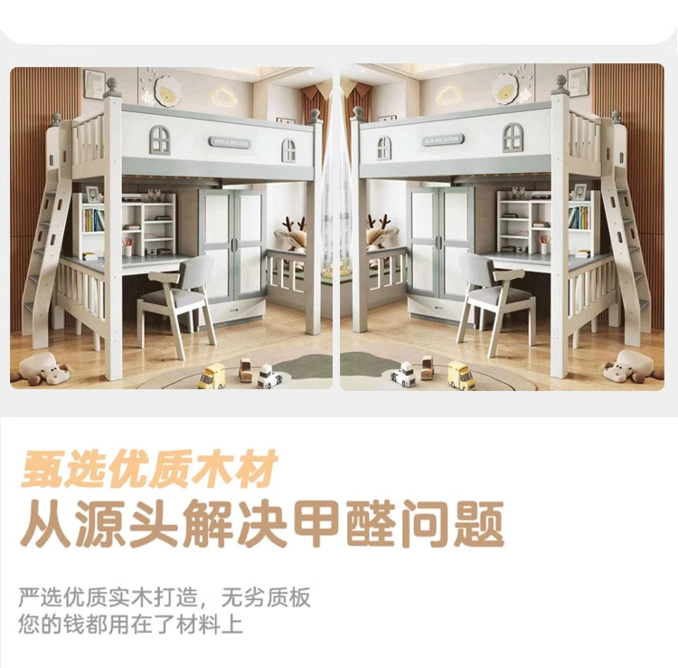 어린이용 이층침대, 상하 이층침대, 이중침대, 비대칭형, 동일한 너비와 높이의 안전가드가 있는 이층침대, 책상과 옷장이 있는 이층침대스토어 가기