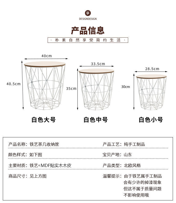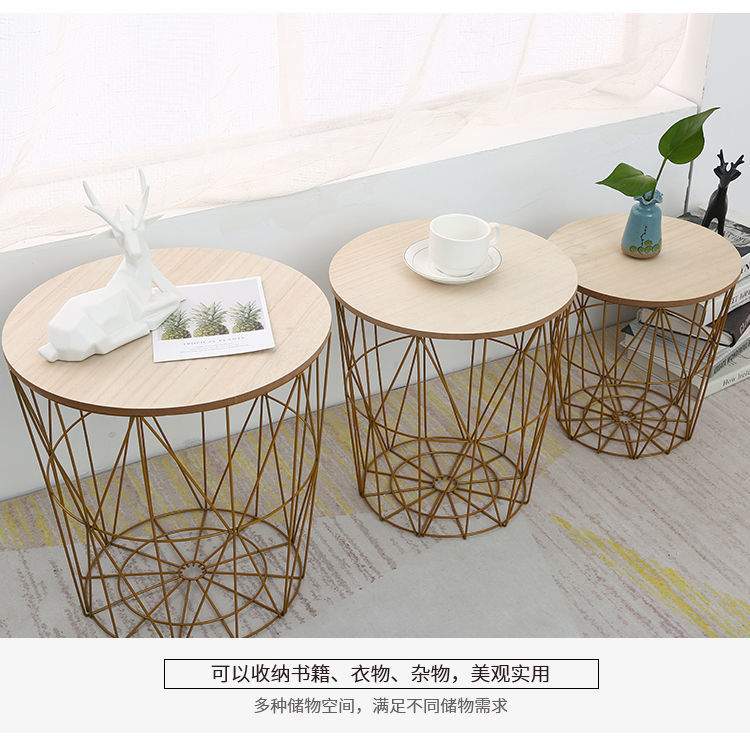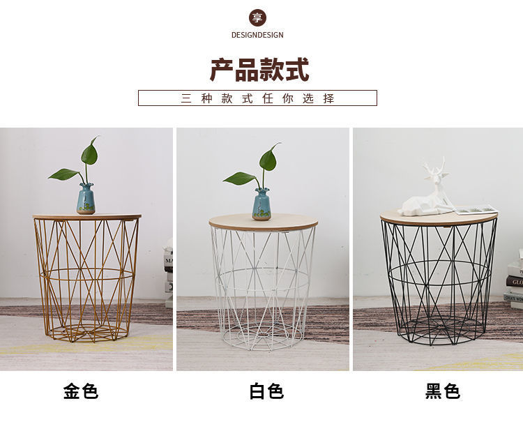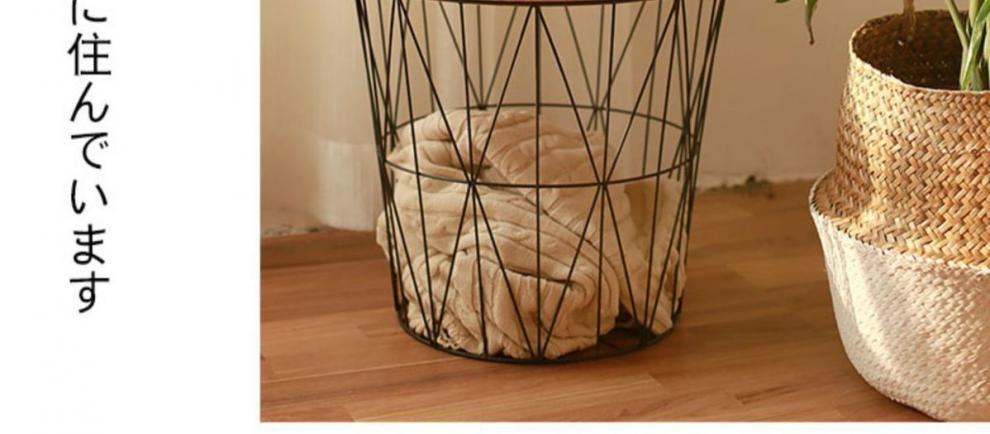 철 보관 바구니 뚜껑 옷 보관 바구니 세탁 바구니 북유럽 스타일 침대 옆 보관 프레임 철 티 테이블 보관 바구니