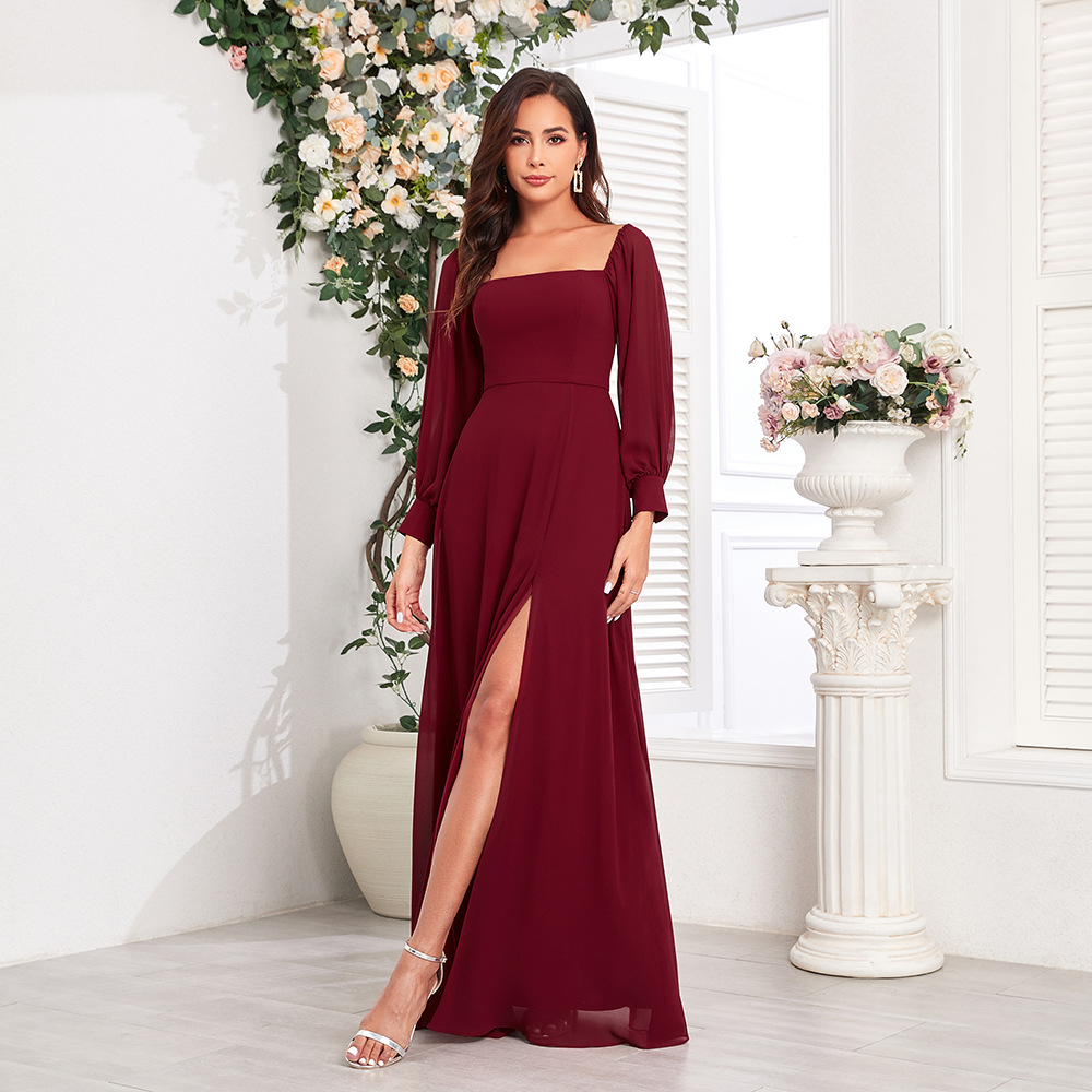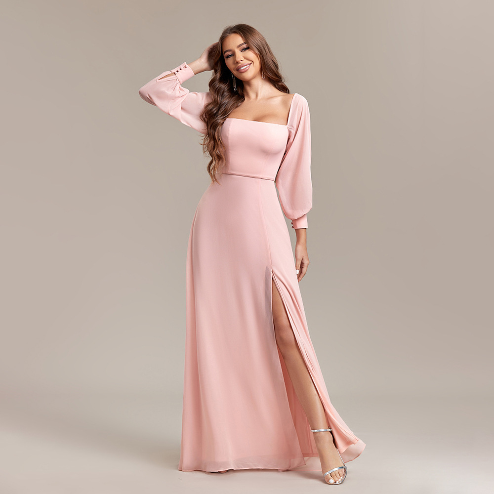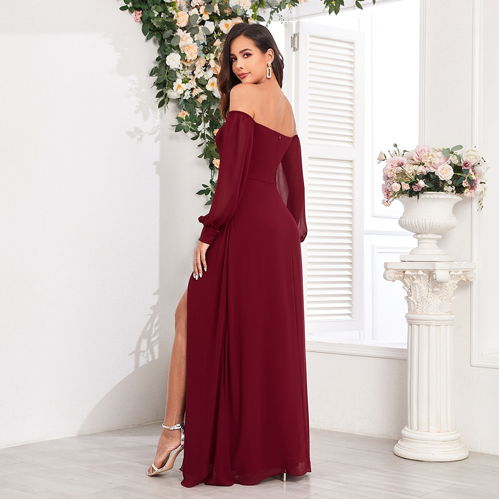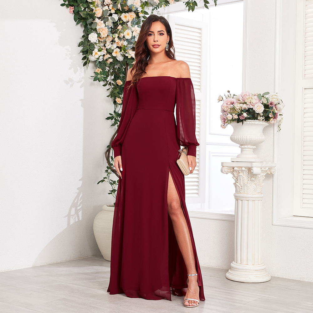 새로운 여성 멀티 웨어 우아한 튜브 탑 탄성 긴팔 백 지퍼 높은 슬릿 원피스 A 라인 쉬폰 원피스스토어 가기