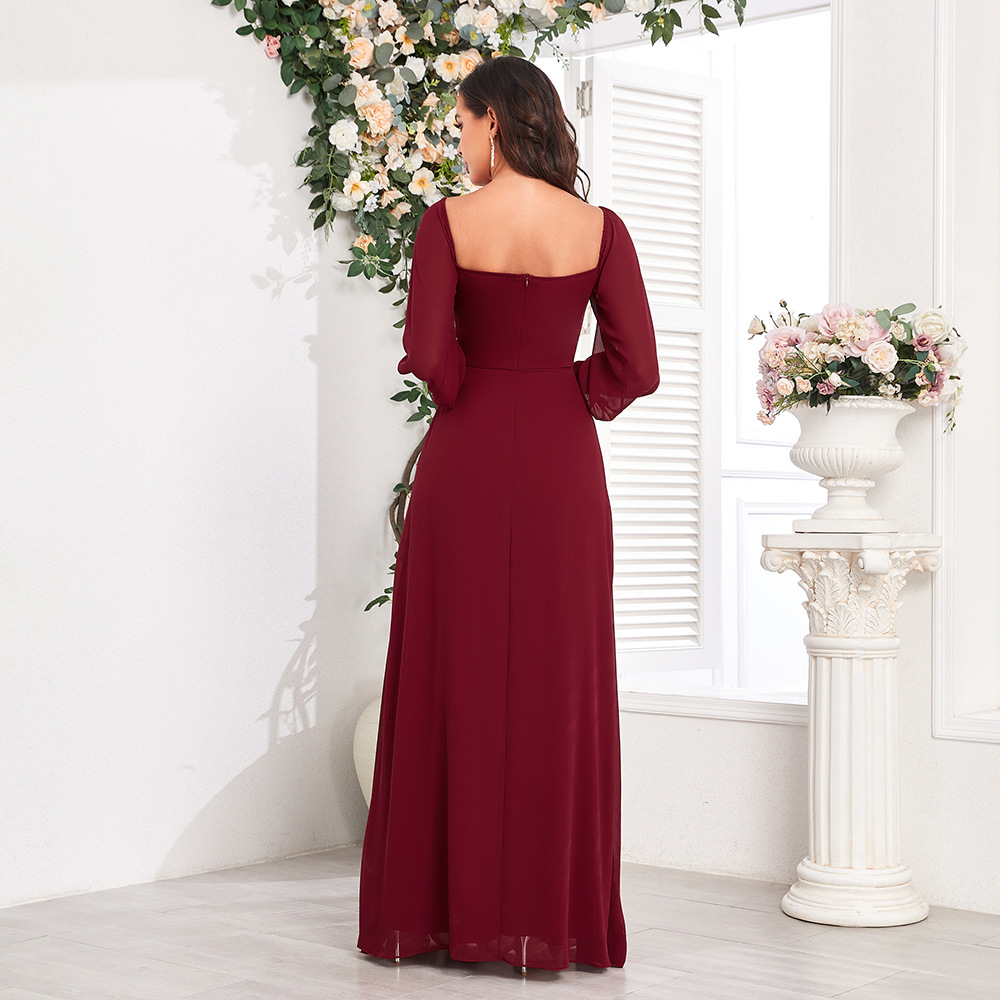 새로운 여성 멀티 웨어 우아한 튜브 탑 탄성 긴팔 백 지퍼 높은 슬릿 원피스 A 라인 쉬폰 원피스