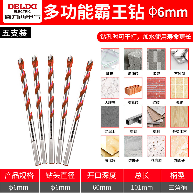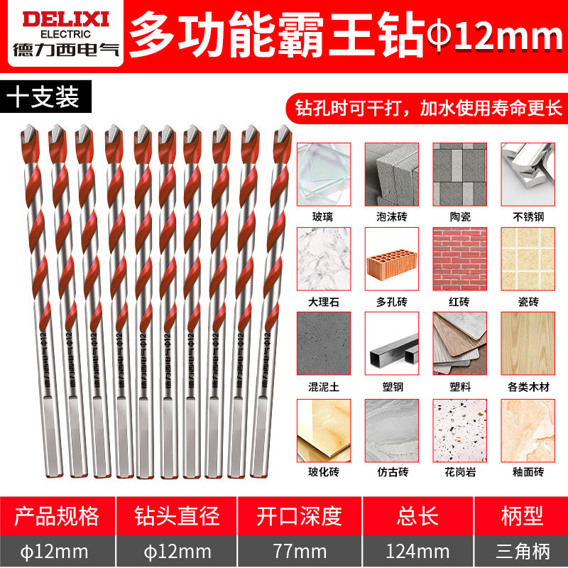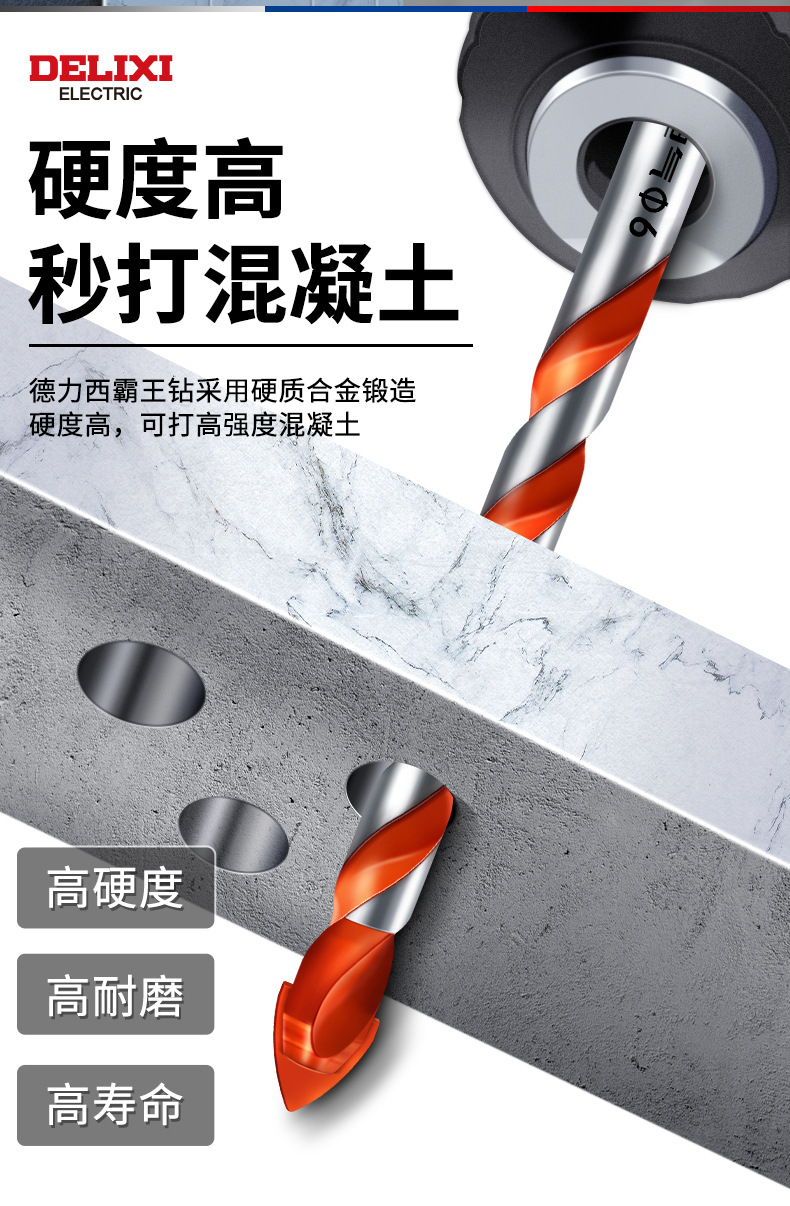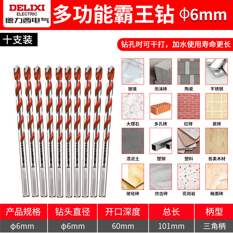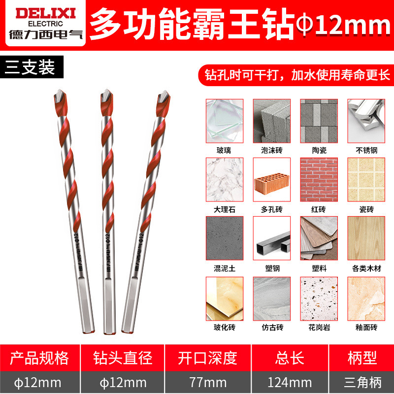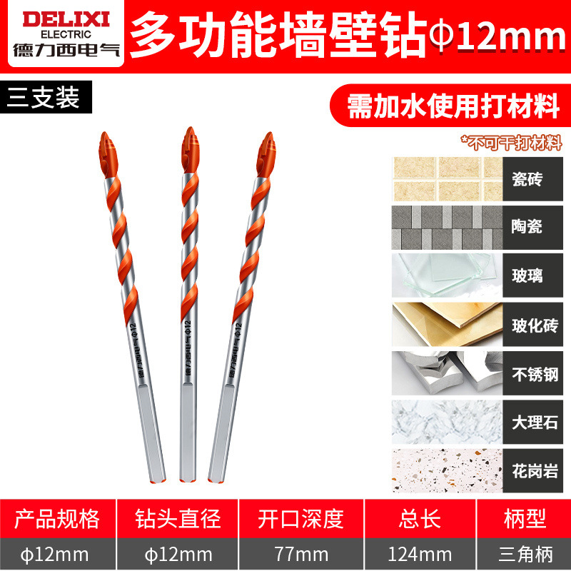 Delixi 하드 합금 드릴 다기능 삼각형 오버로드 드릴 세라믹 유리 콘크리트 벽 구멍 드릴스토어 가기