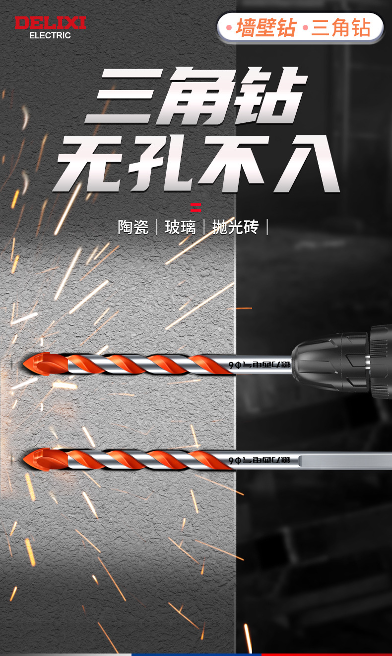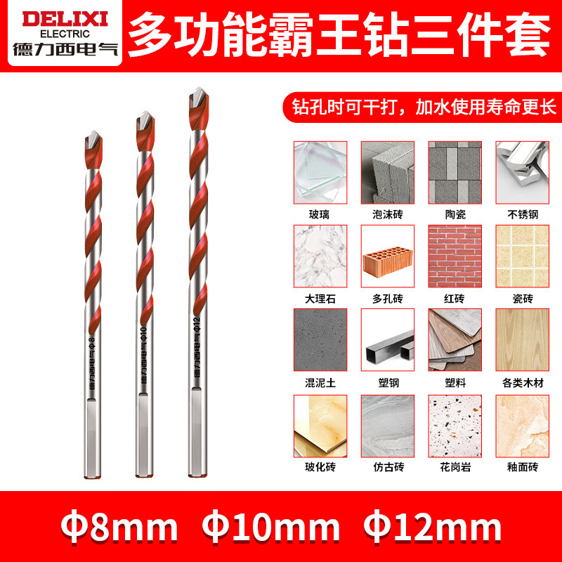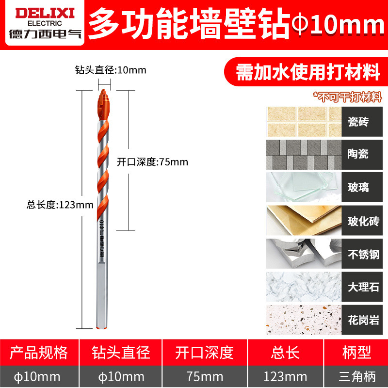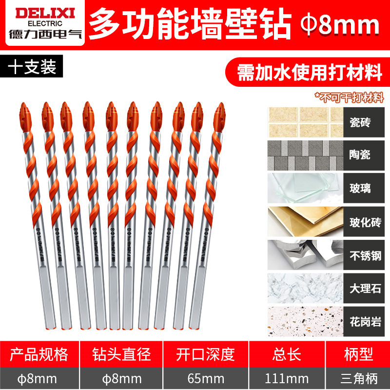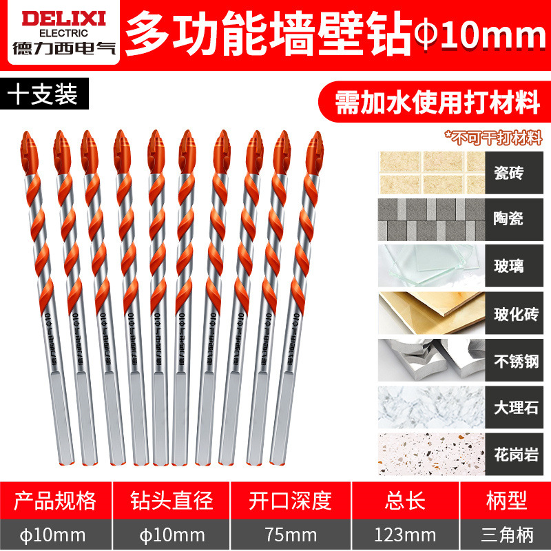 Delixi 하드 합금 드릴 다기능 삼각형 오버로드 드릴 세라믹 유리 콘크리트 벽 구멍 드릴스토어 가기