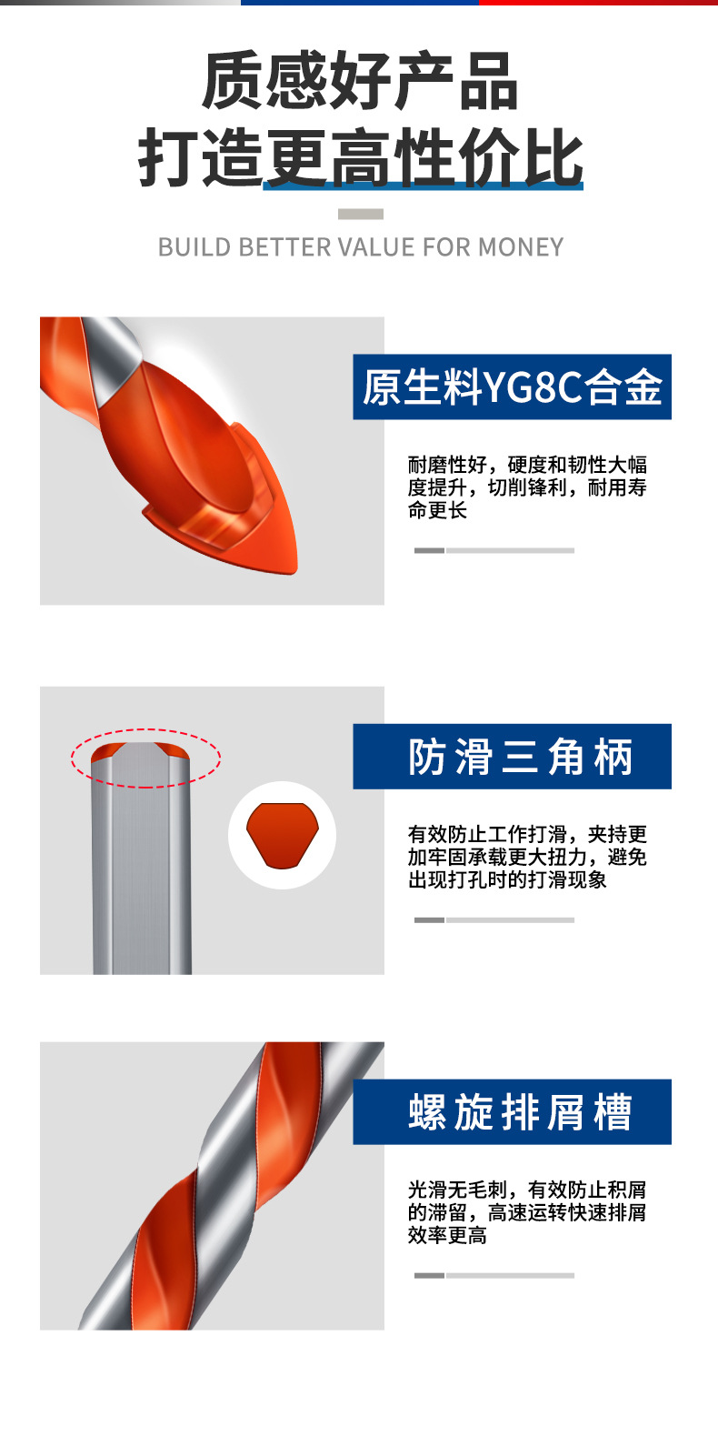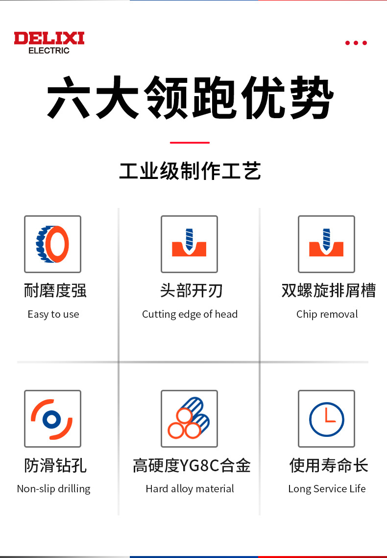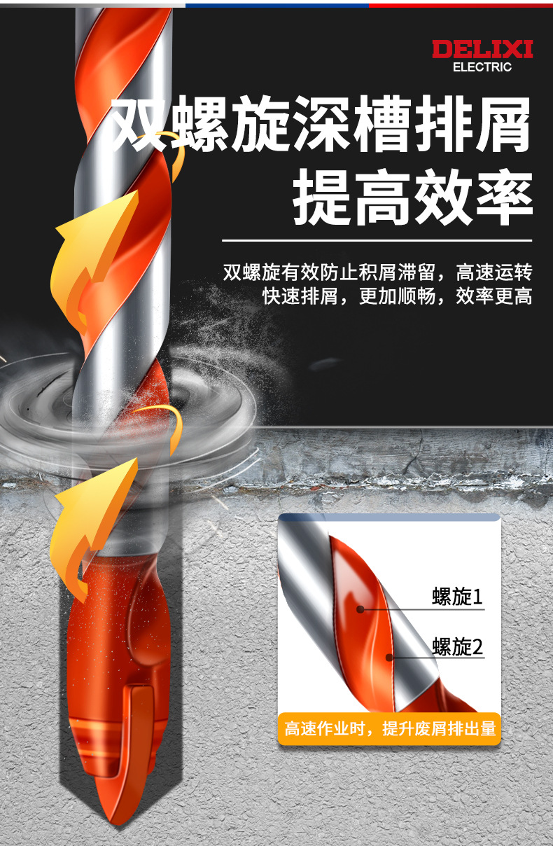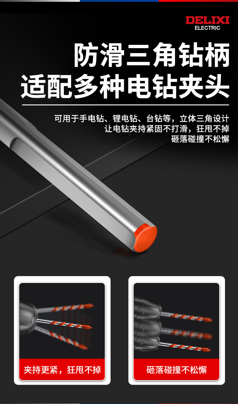 Delixi 하드 합금 드릴 다기능 삼각형 오버로드 드릴 세라믹 유리 콘크리트 벽 구멍 드릴