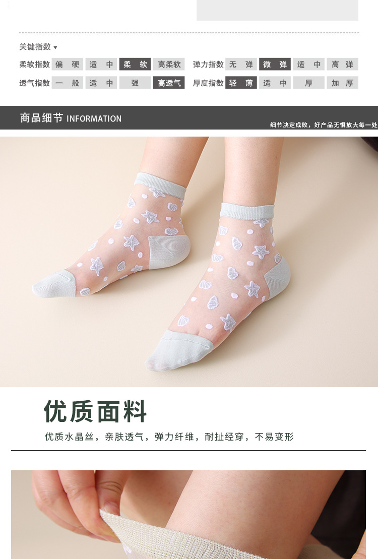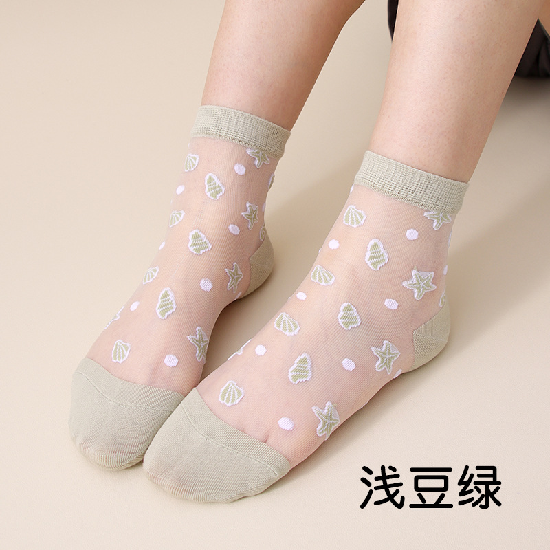 양말 여성 여름 얇은 양말 여름면 바닥 유리 실크 중간 종아리 양말 불가사리 일본 크리스탈 카드 실크 여성 양말