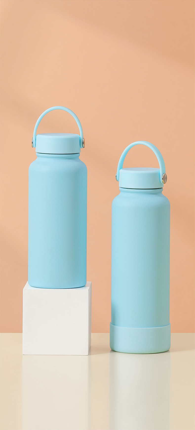 국경 간 손잡이 Morandi 실리콘 바닥 공간 병 대용량 휴대용 스포츠 병 304 스테인레스 스틸 보온병 컵
