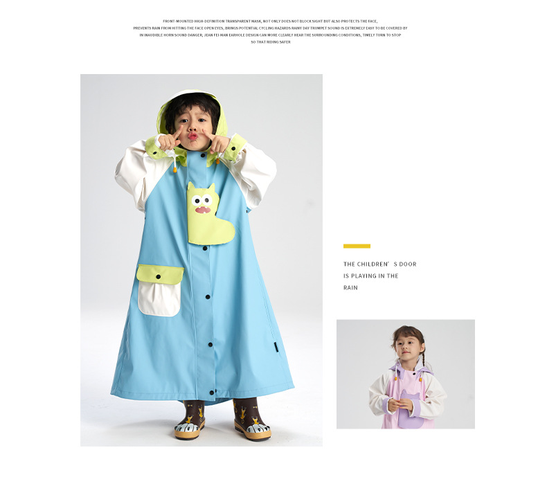 어린이 비옷 어린이 판초 소년 긴 전신 유치원 초등학교 여학생 책가방 방수