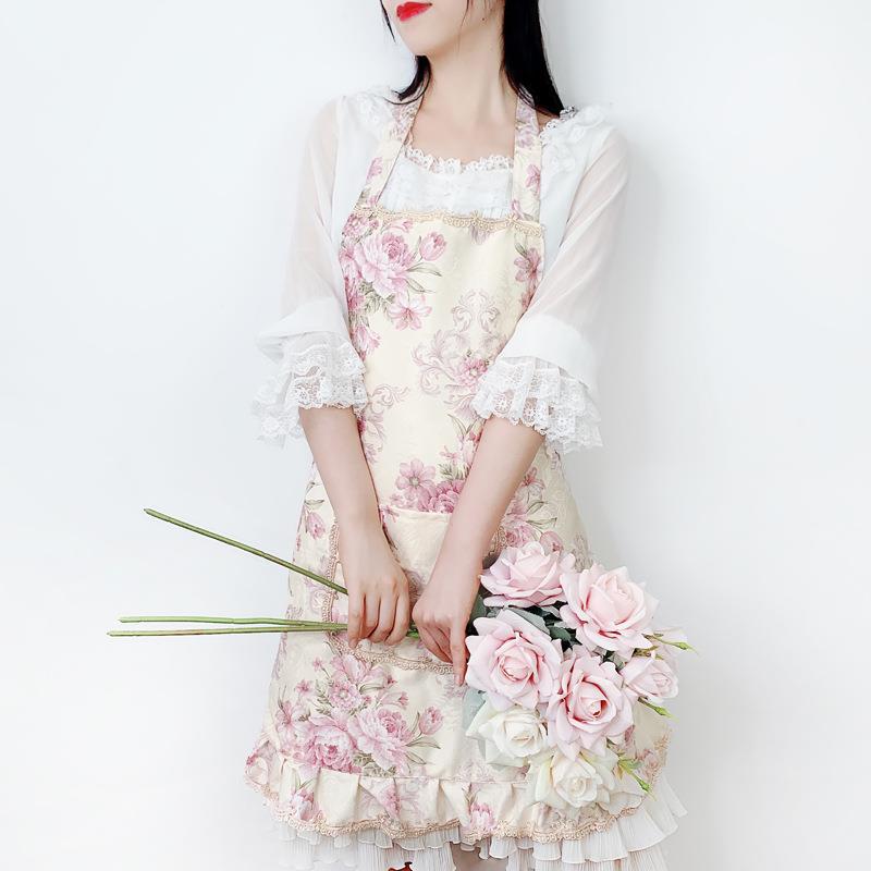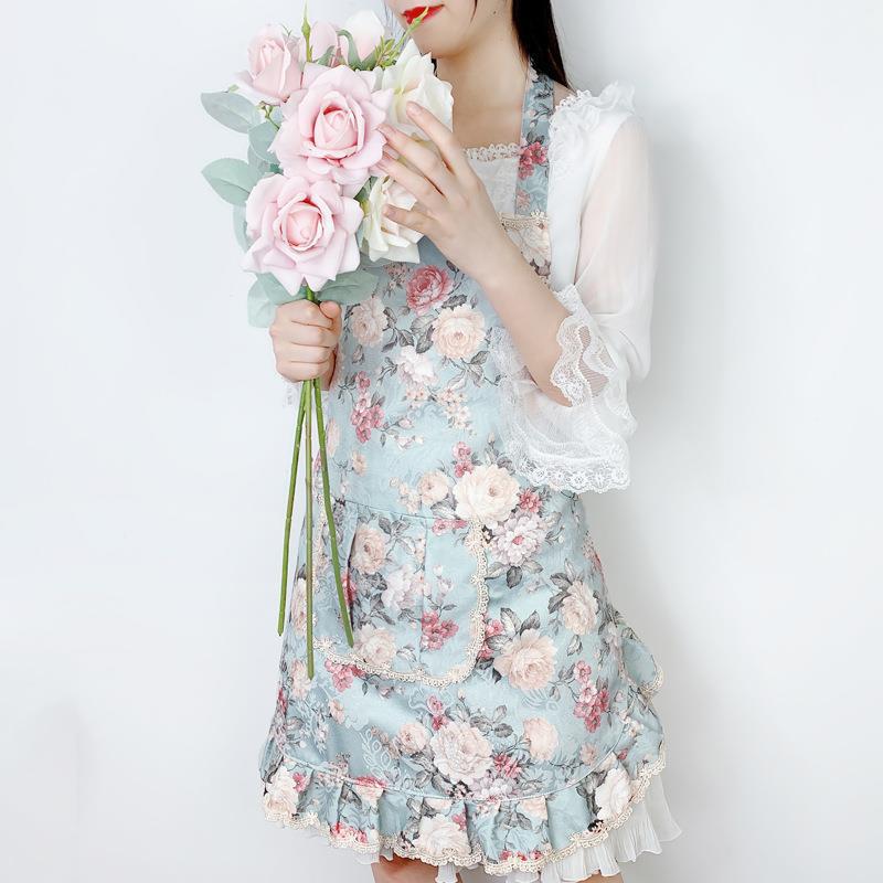 여성용 한국식 세련된 주방 한국식 꽃 레이스 앞치마 더블 레이어 오일 워터 귀여운 집 신선한 목가적스토어 가기