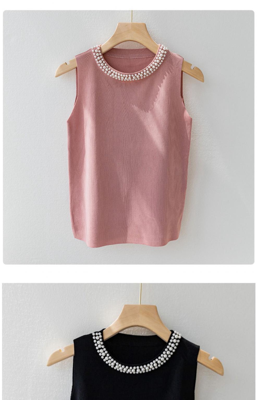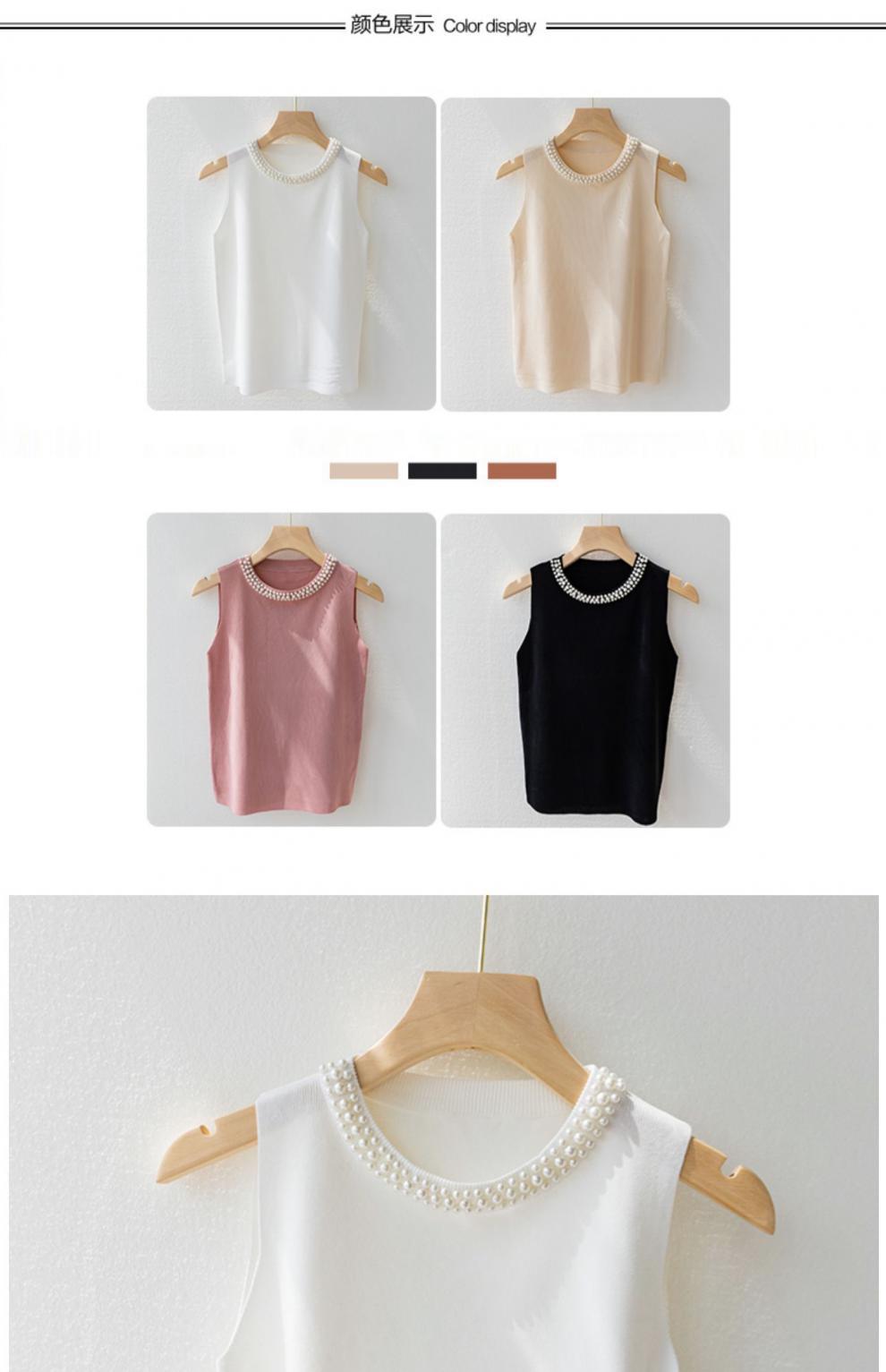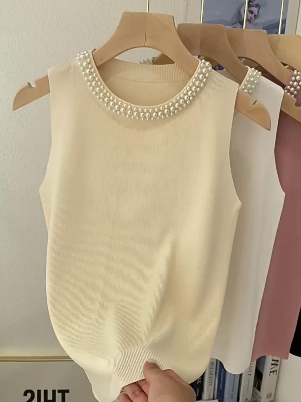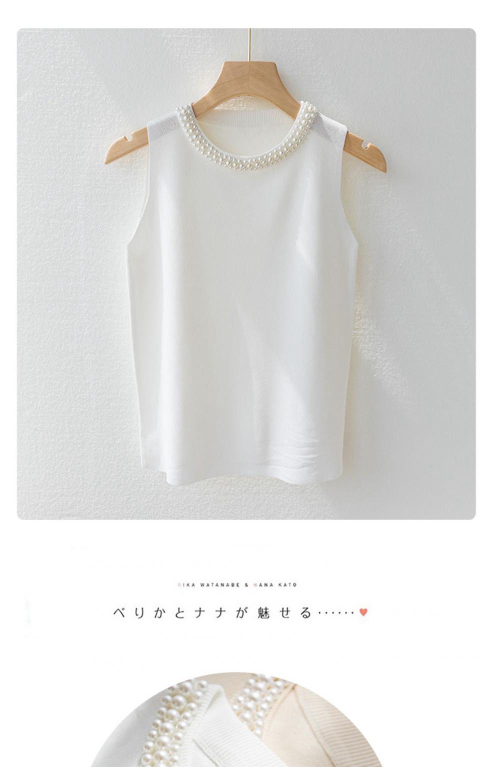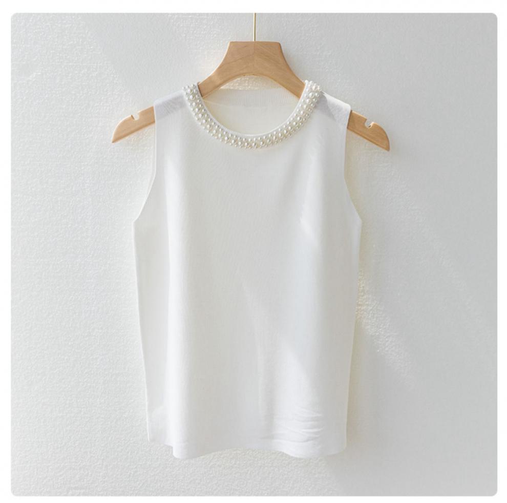 캐미솔 여성용 흰색 민소매 셔츠 봄 여름 스타일 이너웨어 슈트 비즈 스웨터 탑