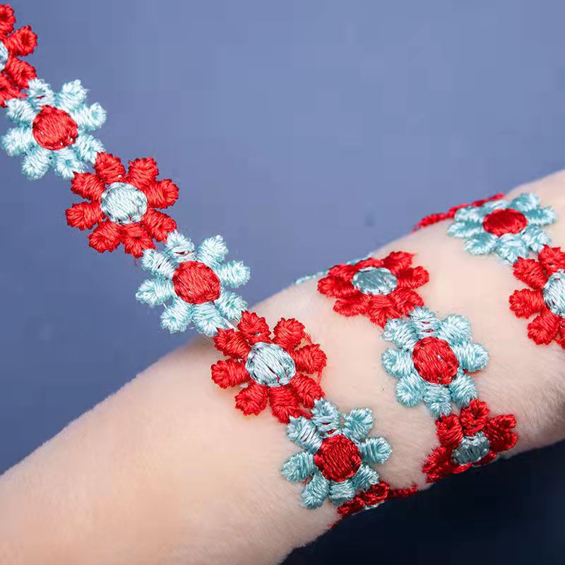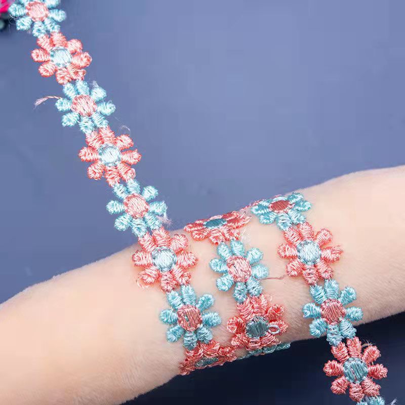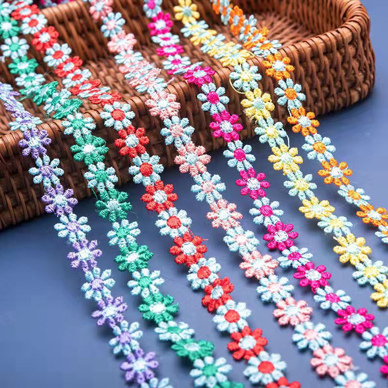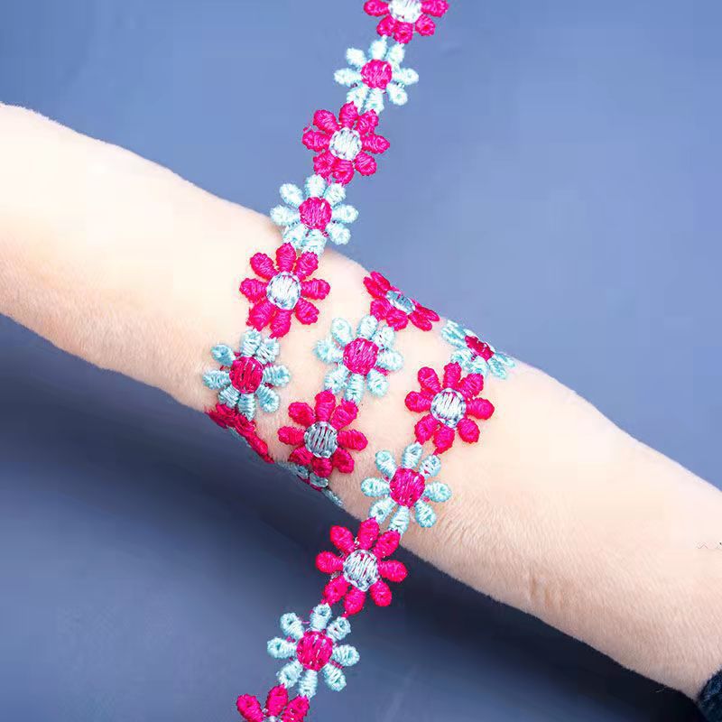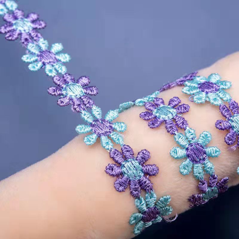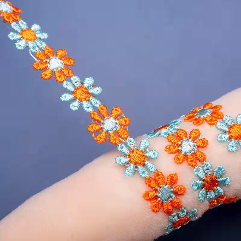 재고 도매 3 차원 자수 수용성 레이스 폴리 에스테르 실크 목화 수용성 레이스 태양 꽃 의류 액세서리