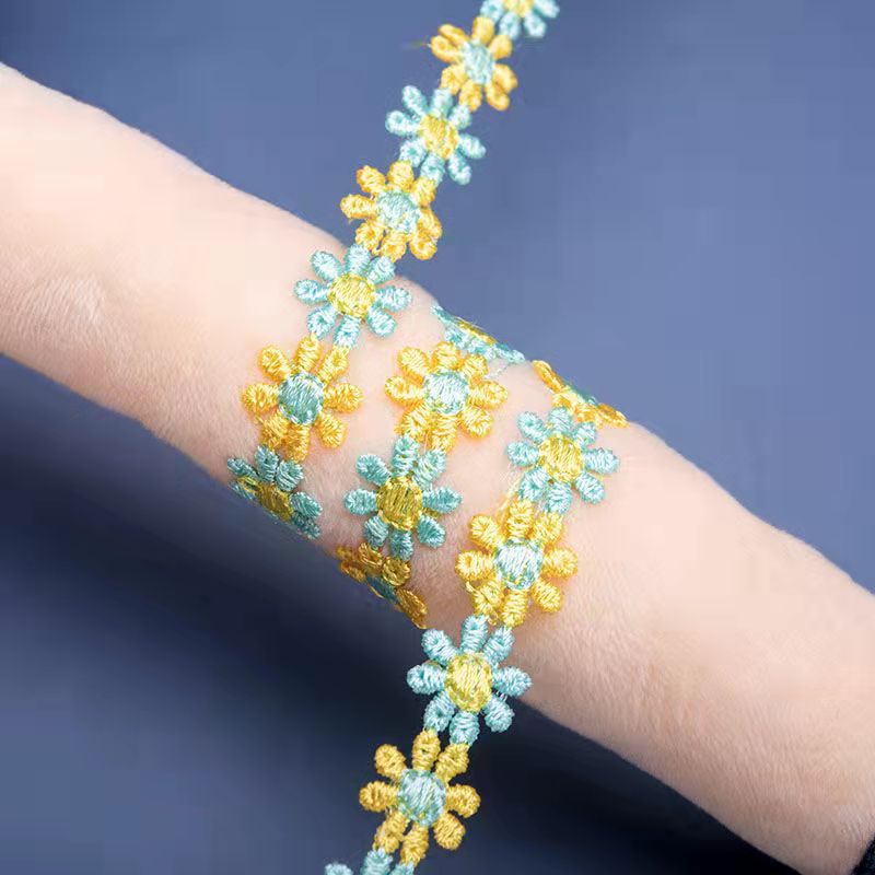 재고 도매 3 차원 자수 수용성 레이스 폴리 에스테르 실크 목화 수용성 레이스 태양 꽃 의류 액세서리스토어 가기