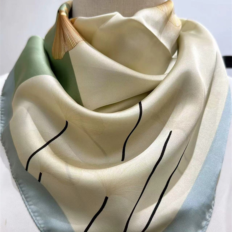 • 카키 쌀 바닥 잎 자기 흡입 버클 실크 스카프