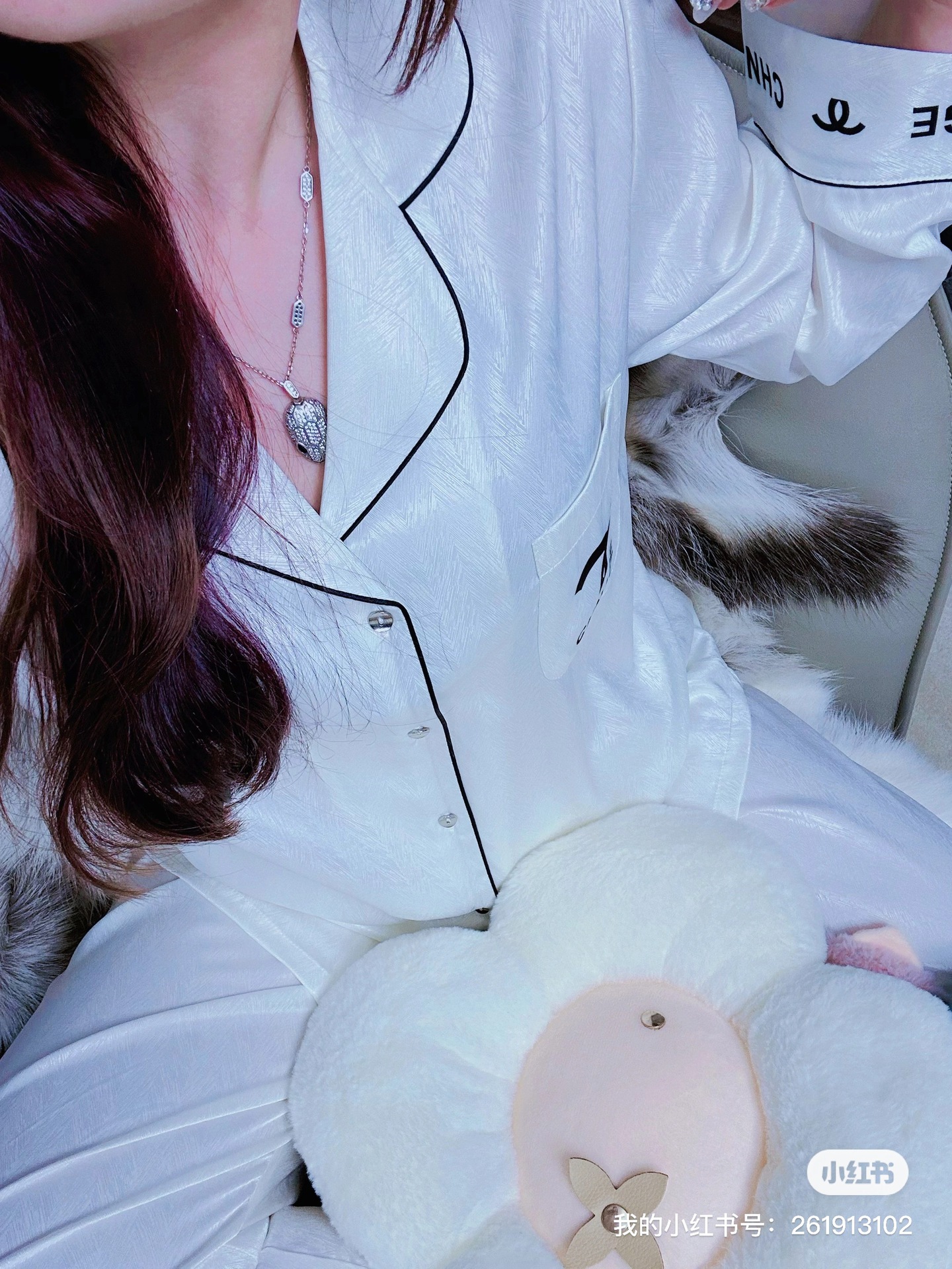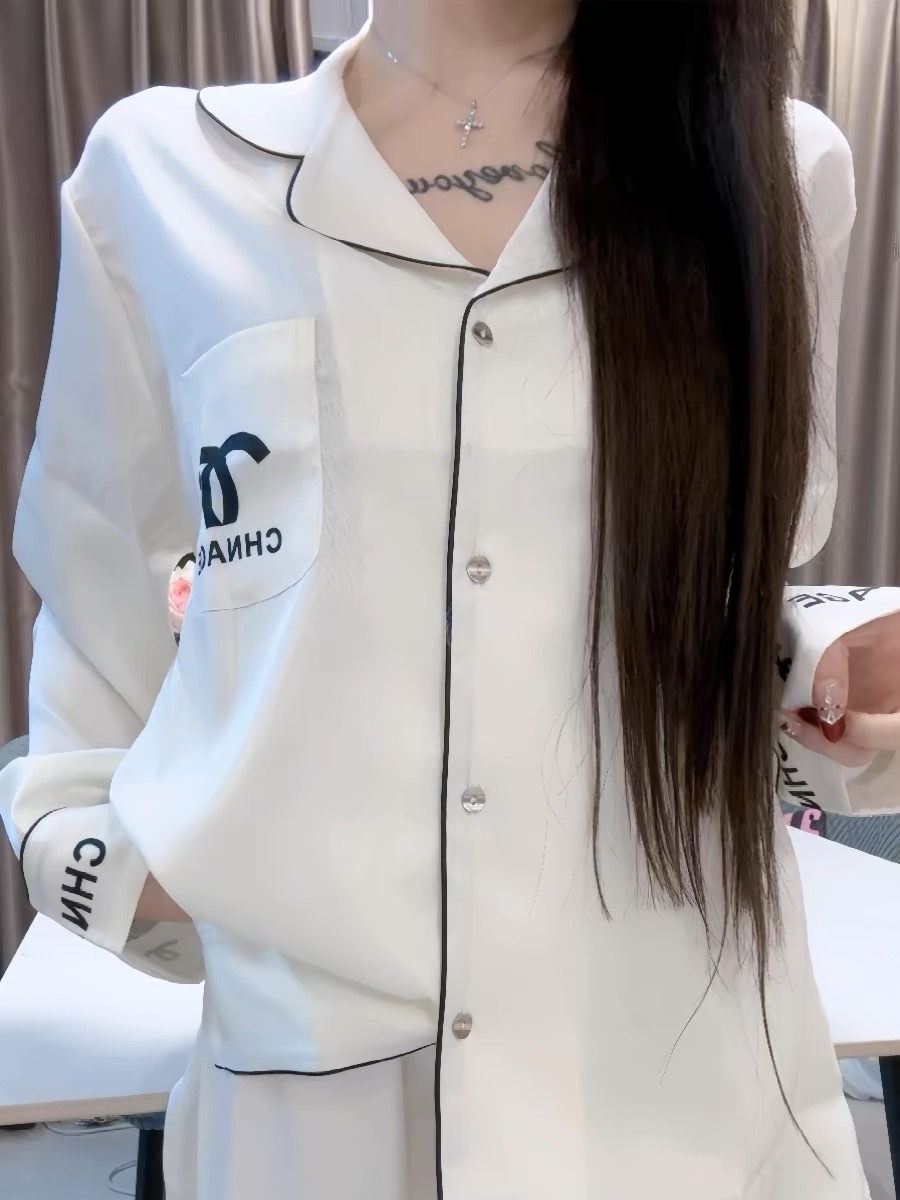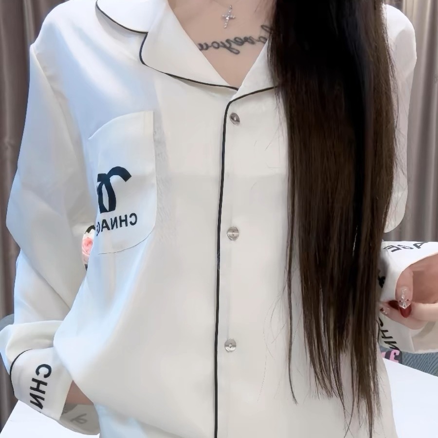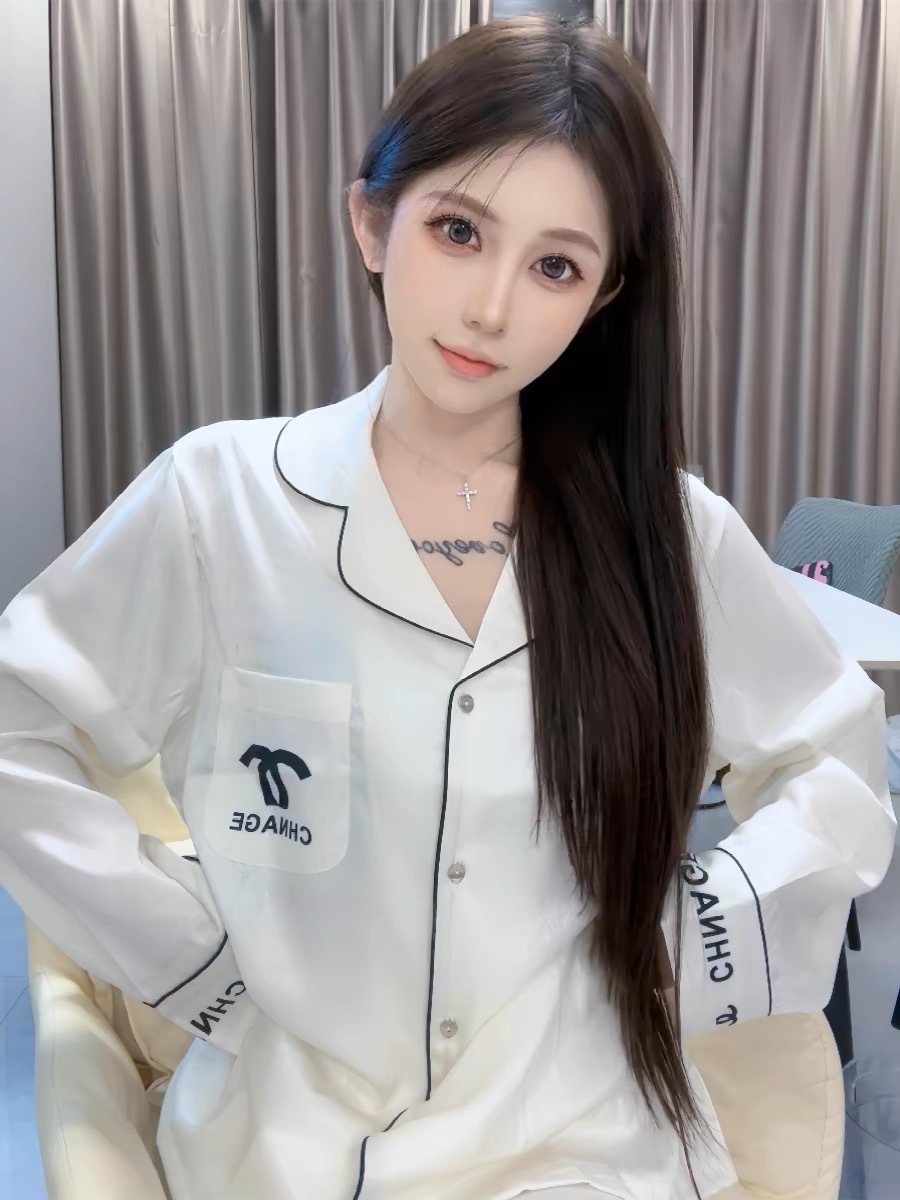 YD 홈웨어 2024 뉴 아이스 실크 파자마 여성 봄과 가을 긴팔 바지 가벼운 고급 문자 하이 센스 슈트스토어 가기