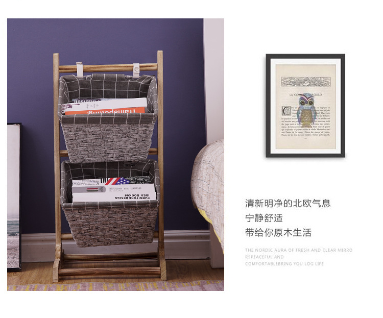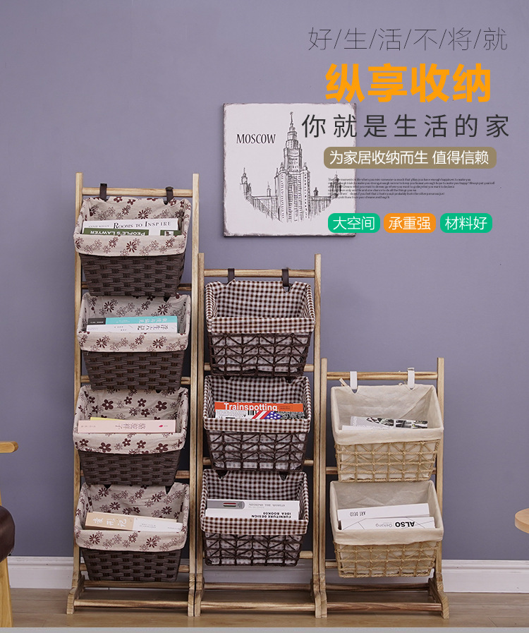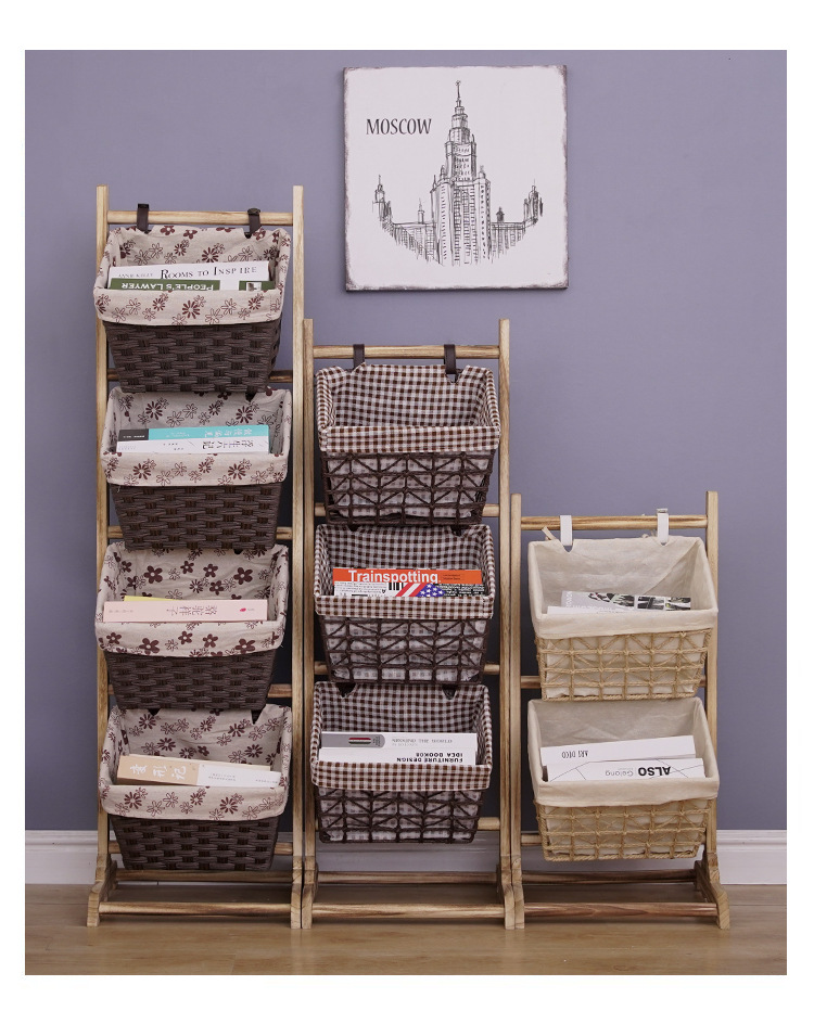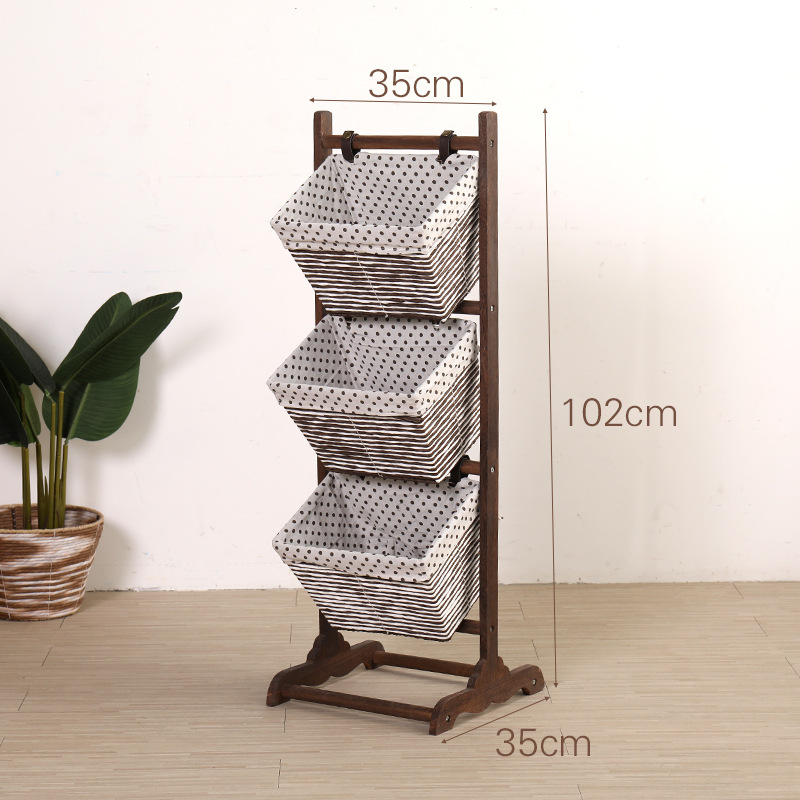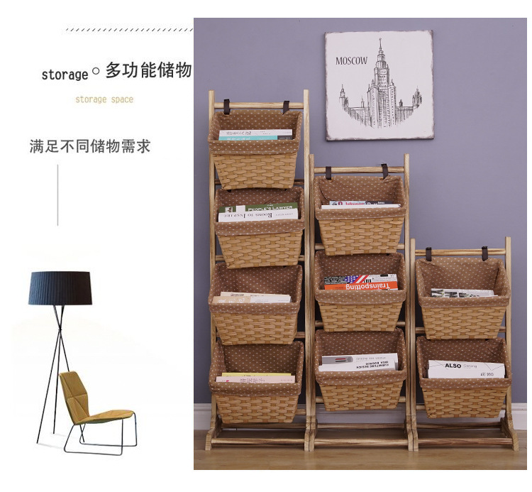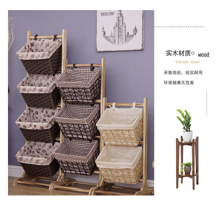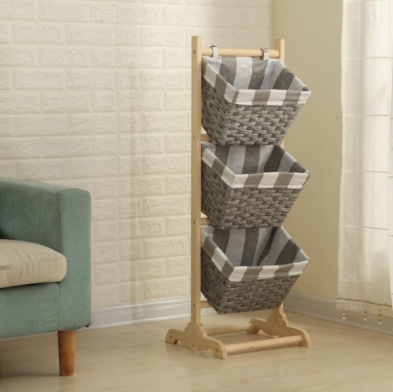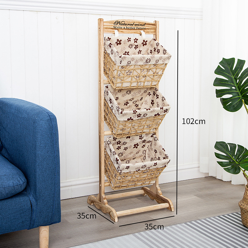 원피스 배달 빈티지 목가적 인 스타일 바닥 보관 랙 단단한 나무 등나무 보관 랙 3 층 교수형 바구니 거실 랙스토어 가기
