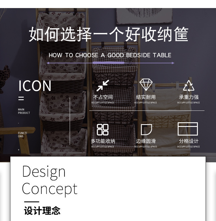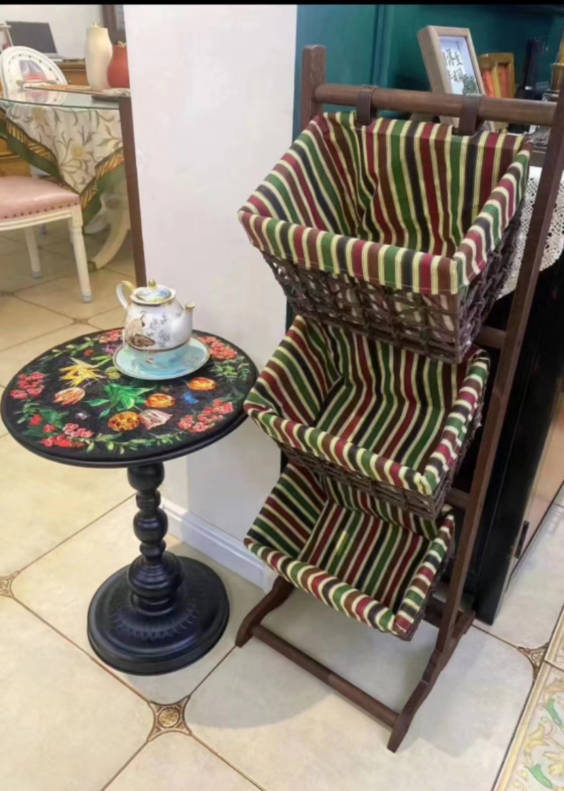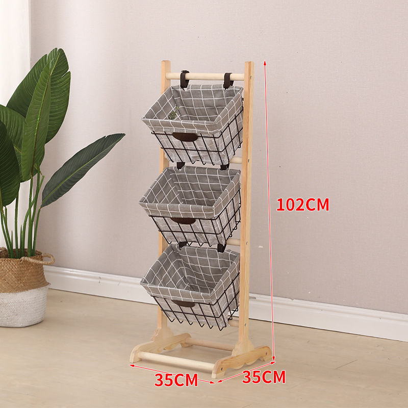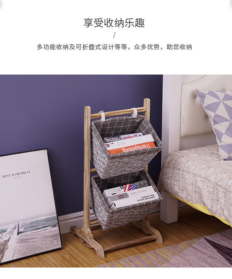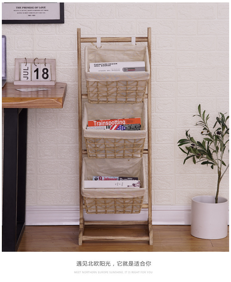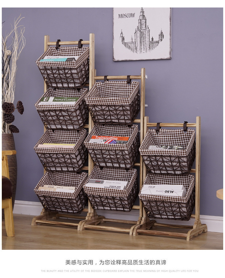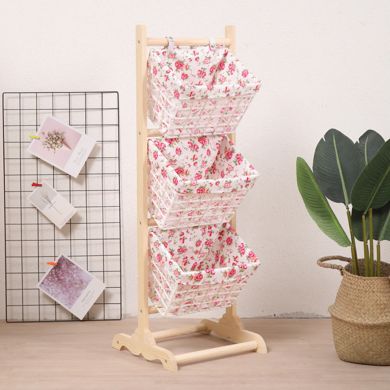 원피스 배달 빈티지 목가적 인 스타일 바닥 보관 랙 단단한 나무 등나무 보관 랙 3 층 교수형 바구니 거실 랙스토어 가기