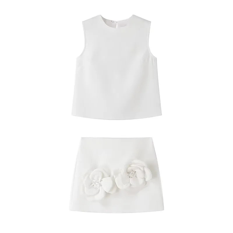 대외 무역 2023 유럽과 미국의 가을 새로운 라운드 넥 짧은 조끼 치마 세트 여성 1802