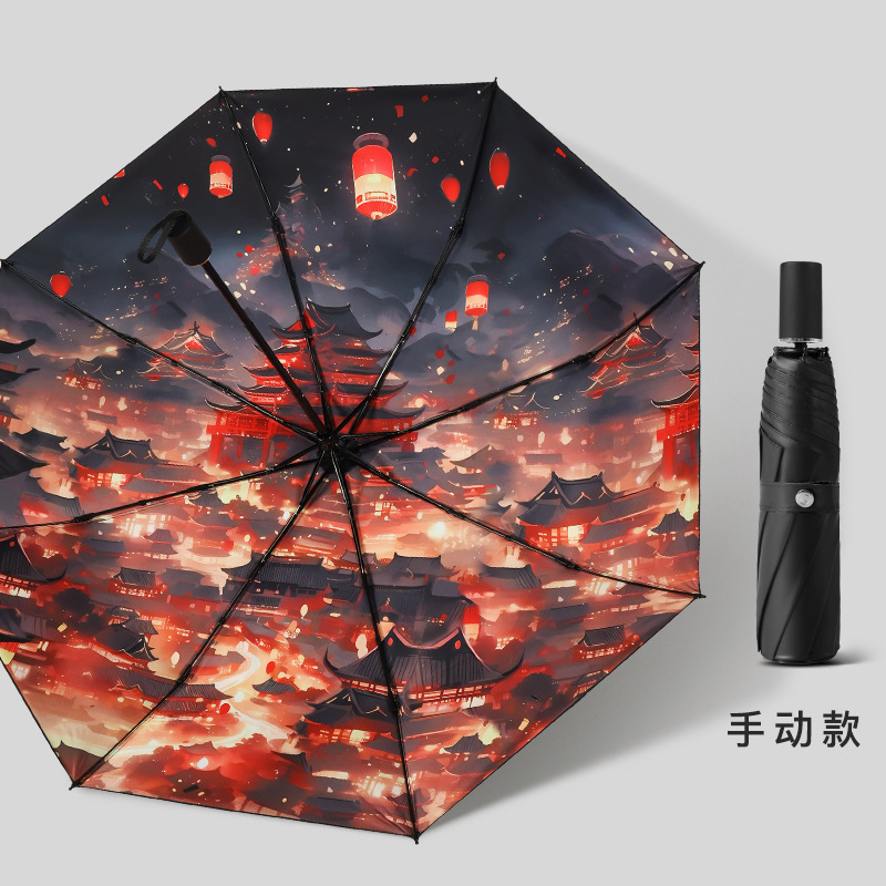 Chuang [3 천 등불] 국가 패션 자동 우산 높은 모양의 검은 접착제 태양 보호 자외선 차단 비 및 비 이중 사용 접이식