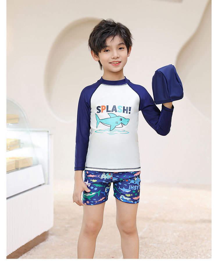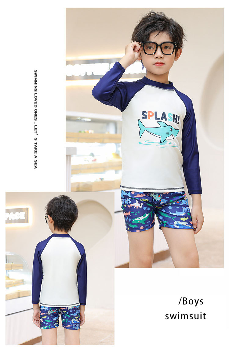 어린이 수영복 귀여운 소년 수영복 소년 긴 소매 선 스크린 분할 큰 아이 아기 수영복 세트 도매스토어 가기